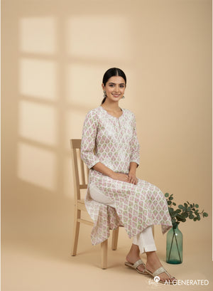 Pink & Sea-Green Floral - Bahaar Mul Cotton Chikankari Kurta, made from the finest Mul Cotton Fabric, known for its feather-light texture and breathability, these kurta sets are a dream against the skin, perfect for both day and evening wear.