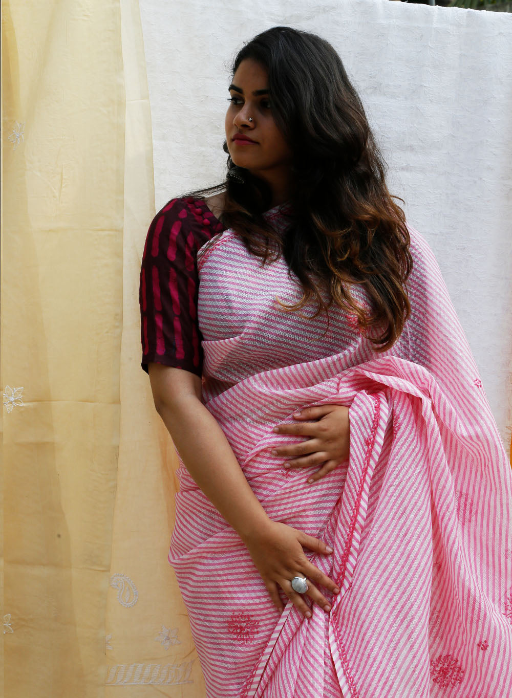 Pink Lehariya - Kota Aks Cotton Chikankari Saree