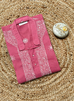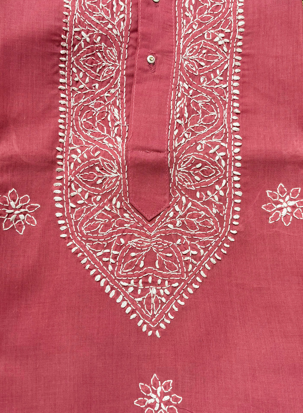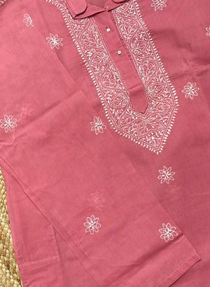 Pink - Nawab Cotton Men Chikankari Long Kurta