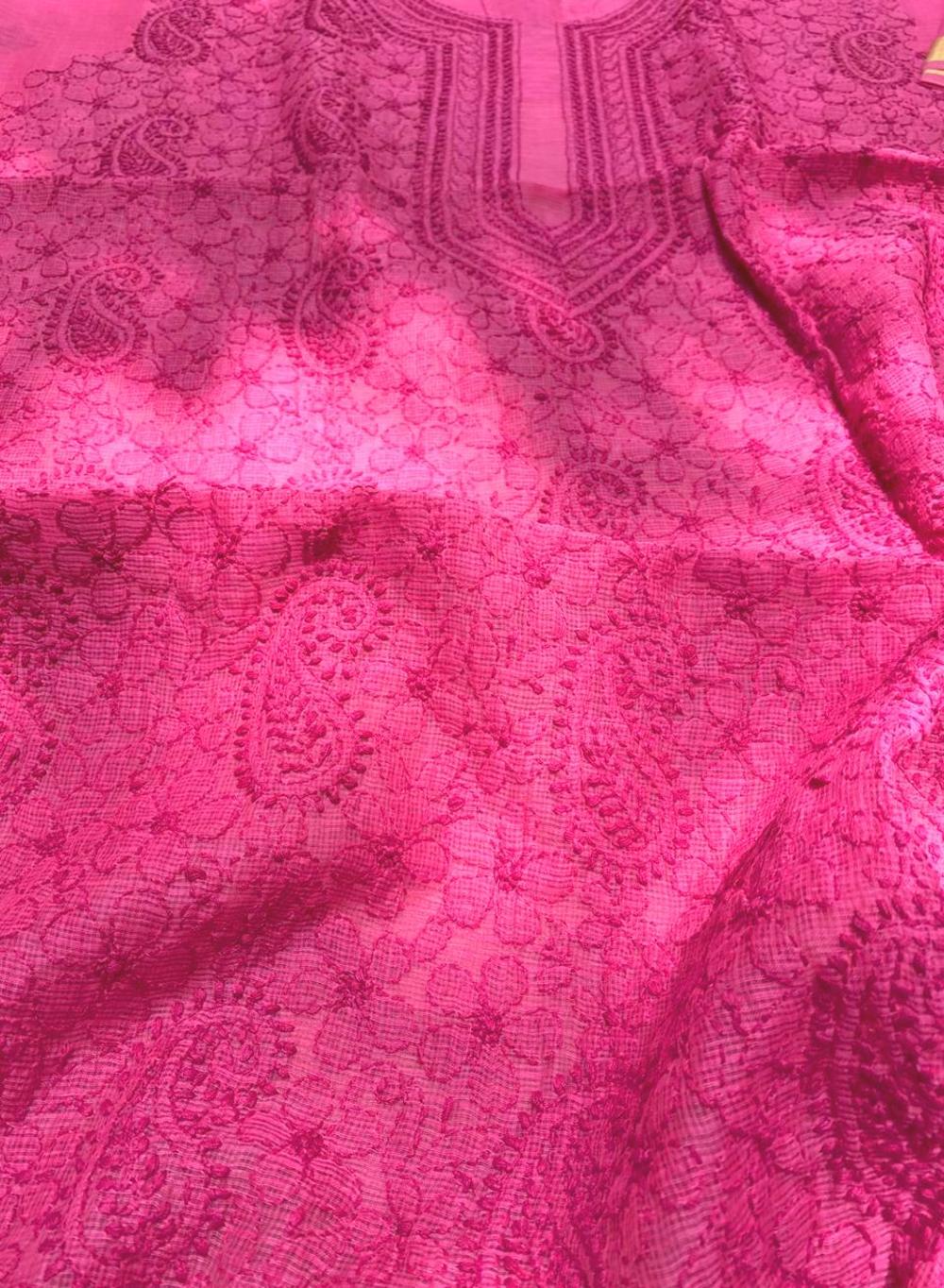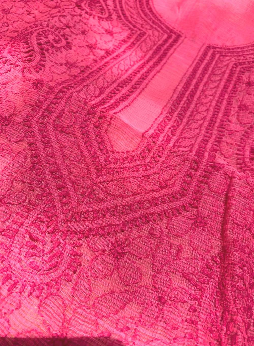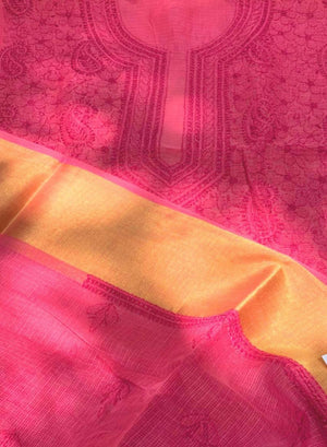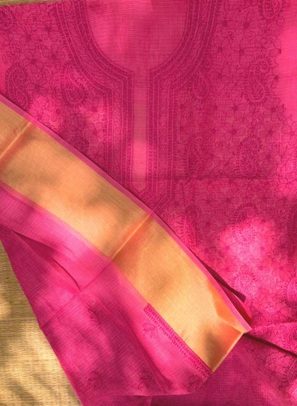 Pink On Pink Zari Border - Dhoop Kinaray Kota Cotton Chikankari Kurta Fabric