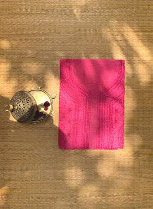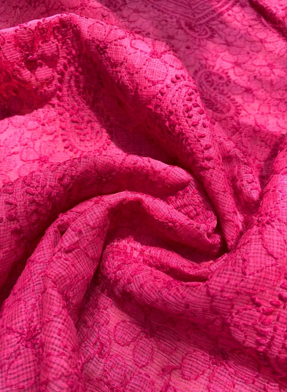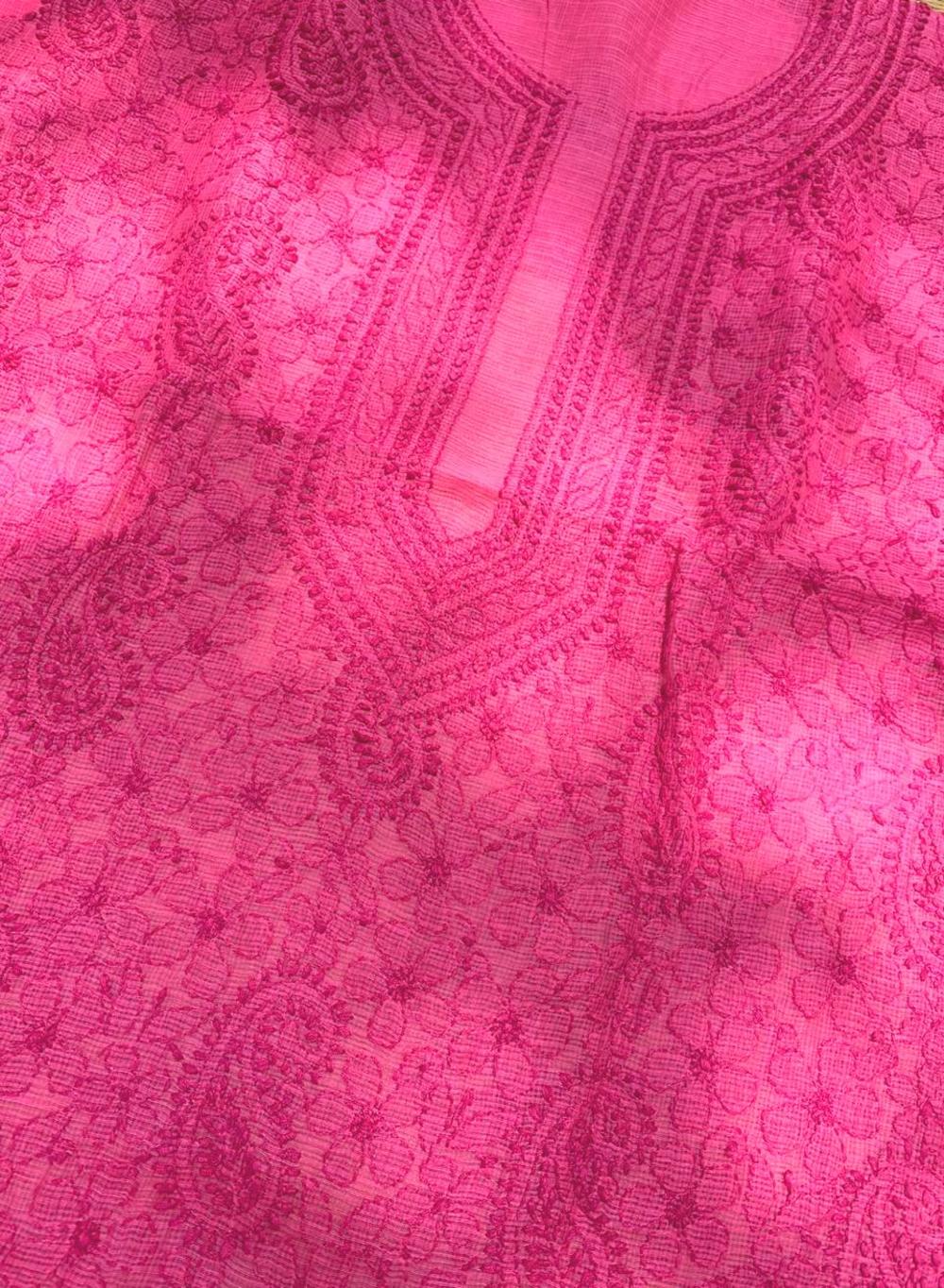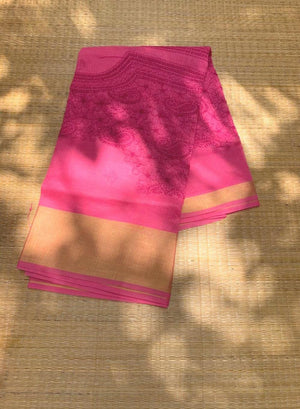 Pink On Pink Zari Border - Dhoop Kinaray Kota Cotton Chikankari Kurta Fabric