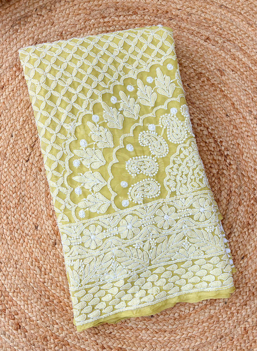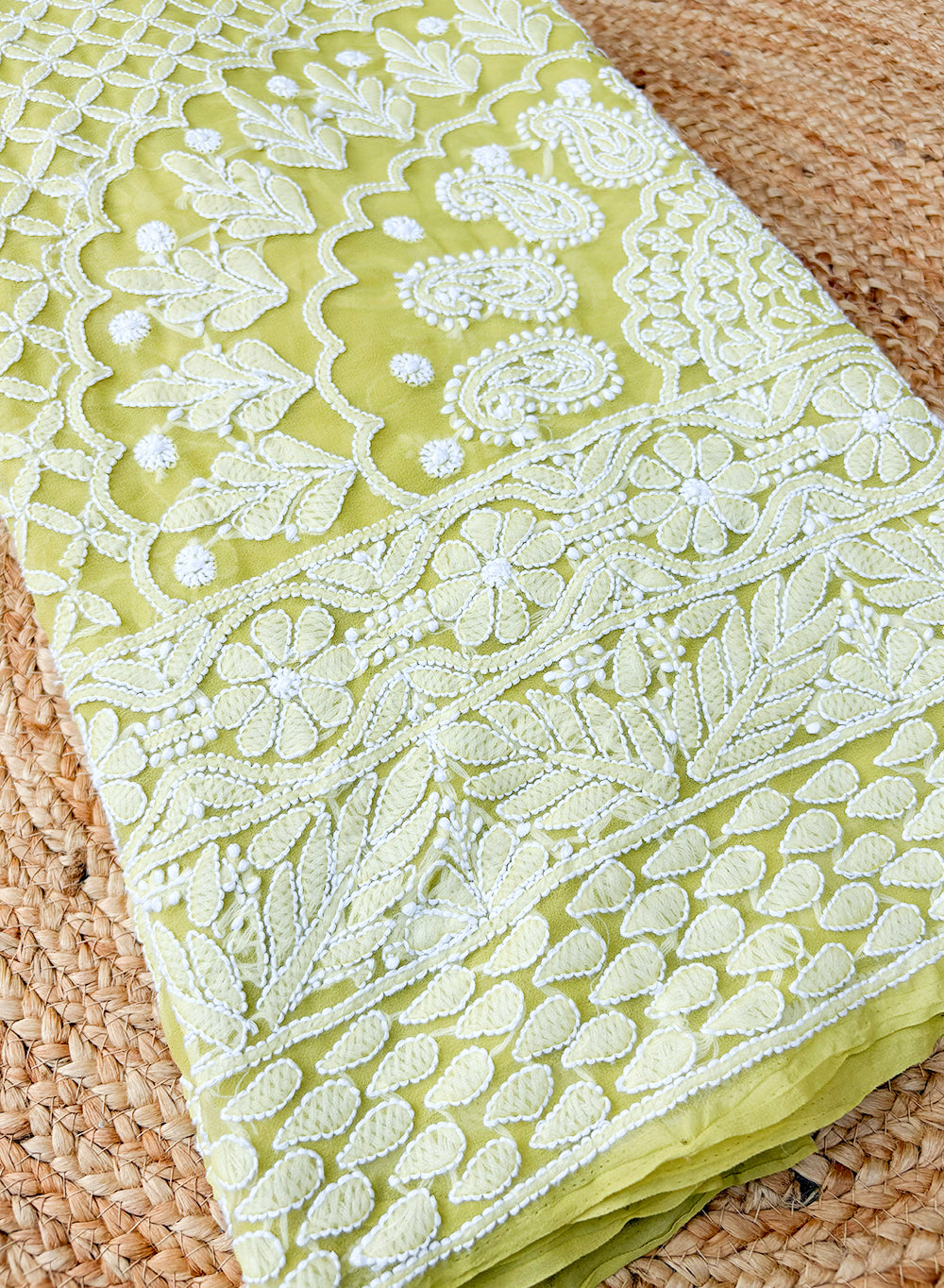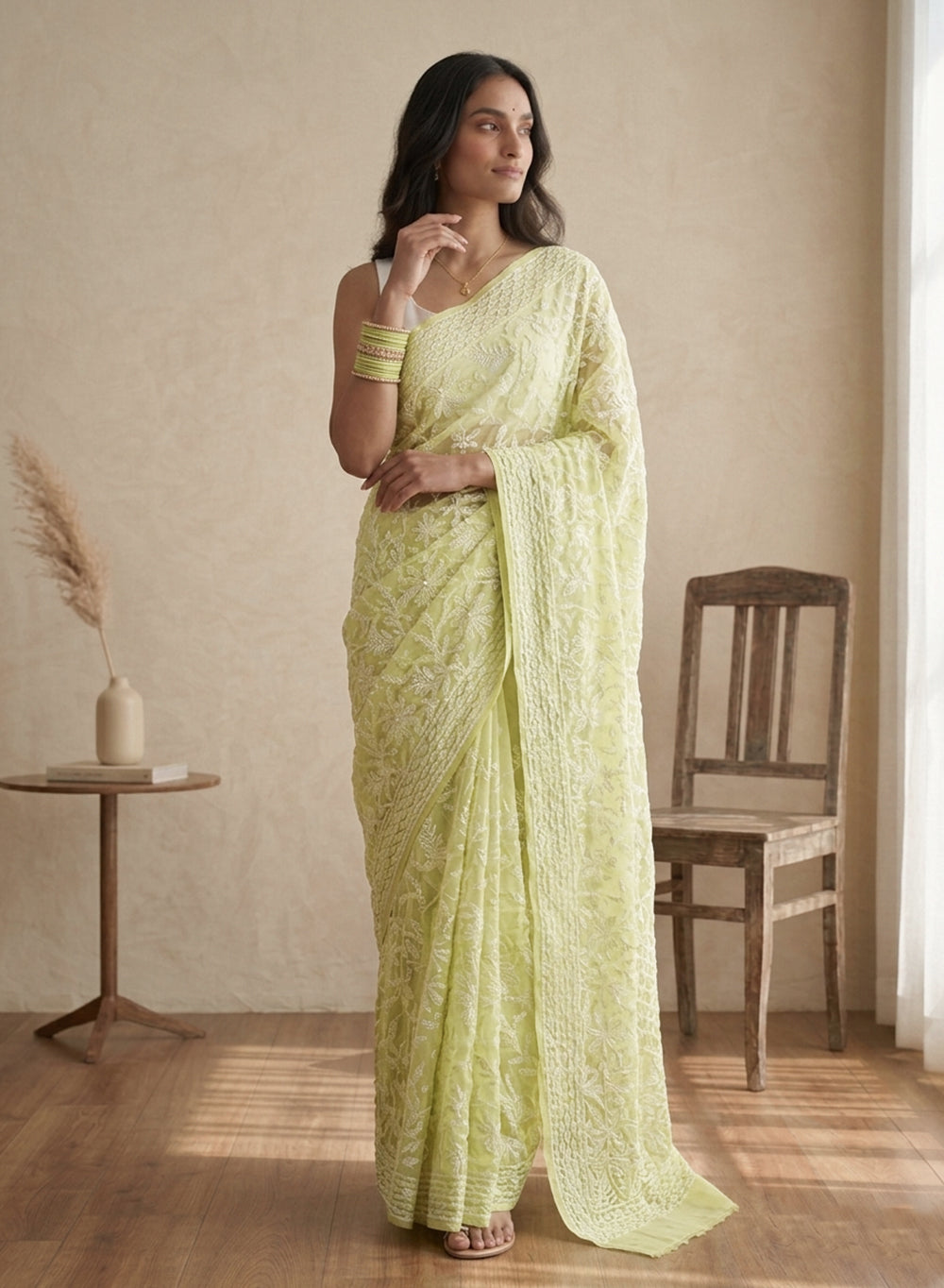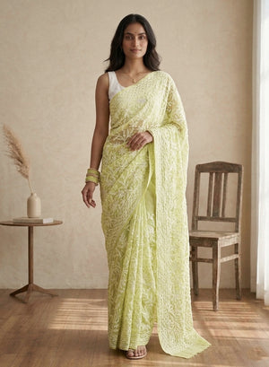 Pista Green Full Jaal - Aks Georgette Chikankari Saree