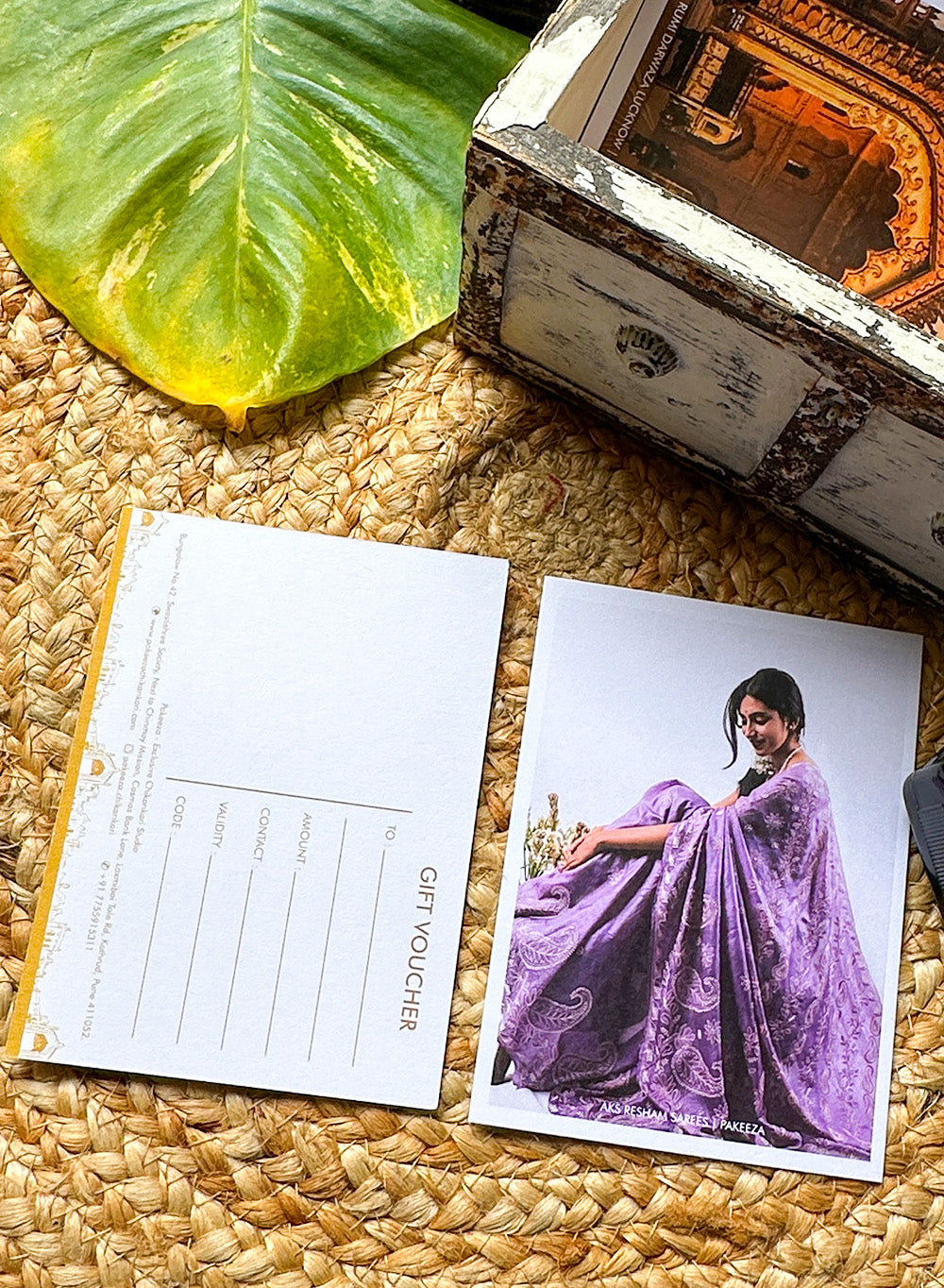 Our gift vouchers, designed as postcards, carry not just the value of a present but also the nostalgia of the warmth of a handwritten message. Each postcard voucher is a reminder of how love can be shared through the simplest of gestures, like sending a pyaar bhara paighaam, to someone you cherish.