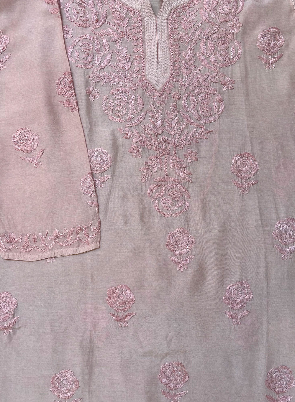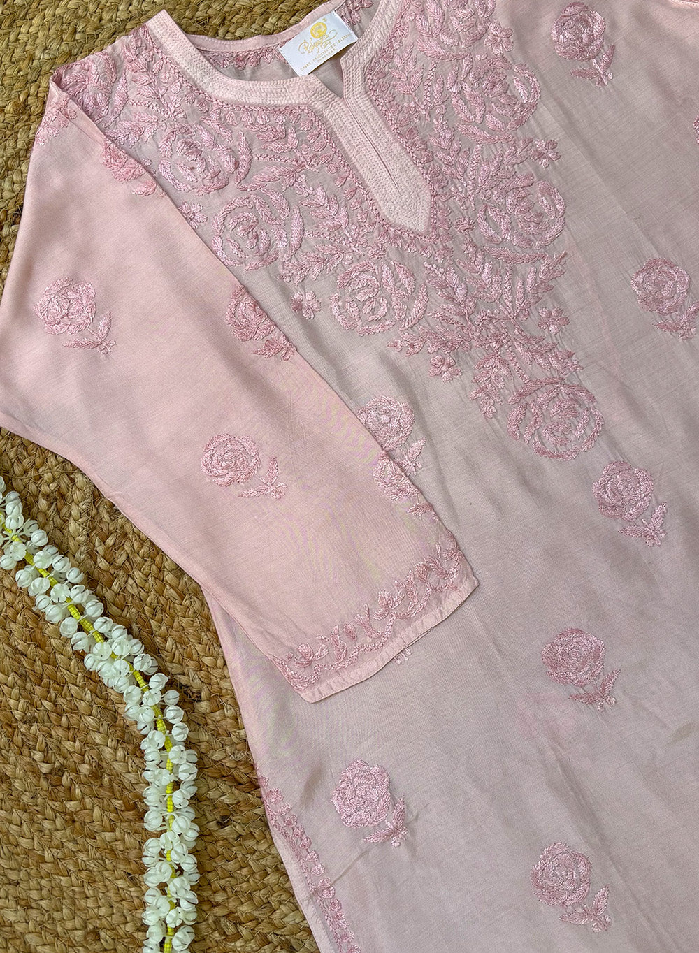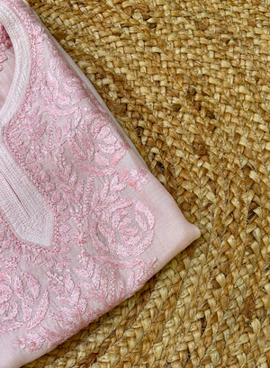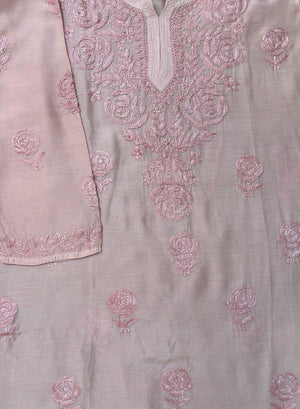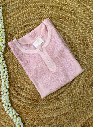 Powder Pink - Muslin Gulshan Chikankari Short Top