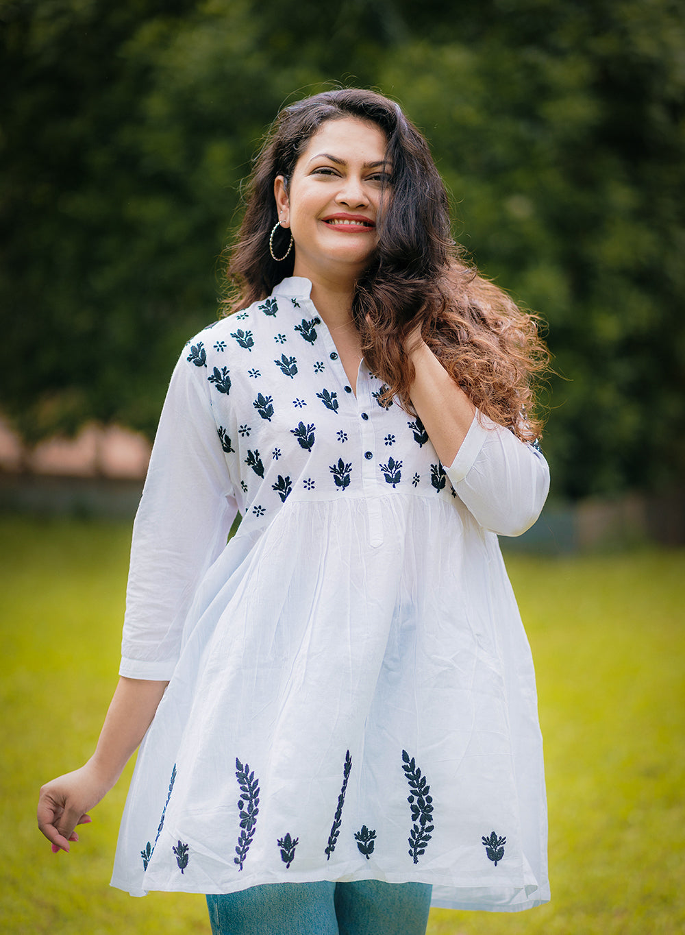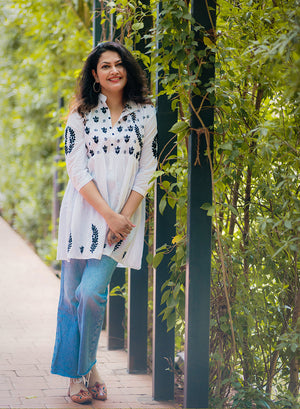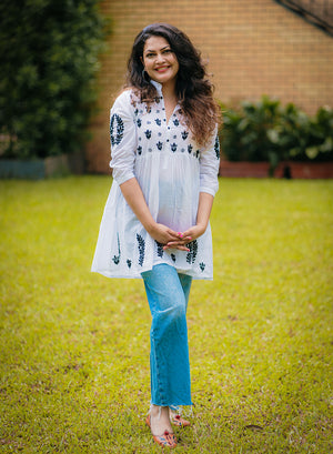 Our gorgeous Priyanka Pure Cotton Short Tops are hand-embroidered with black twisted cotton thread. It has been made with pure cotton fabric, which is comfortable for all weathers.