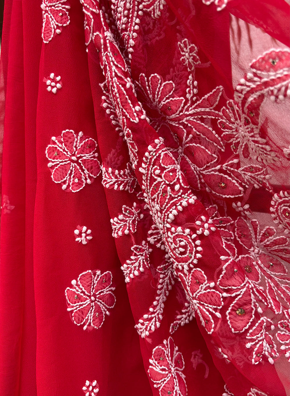 Elegant, hand embroidered and simply beautiful, our Aks Georgette Chikankari Sarees with Mukaish, are all set to capture hearts.