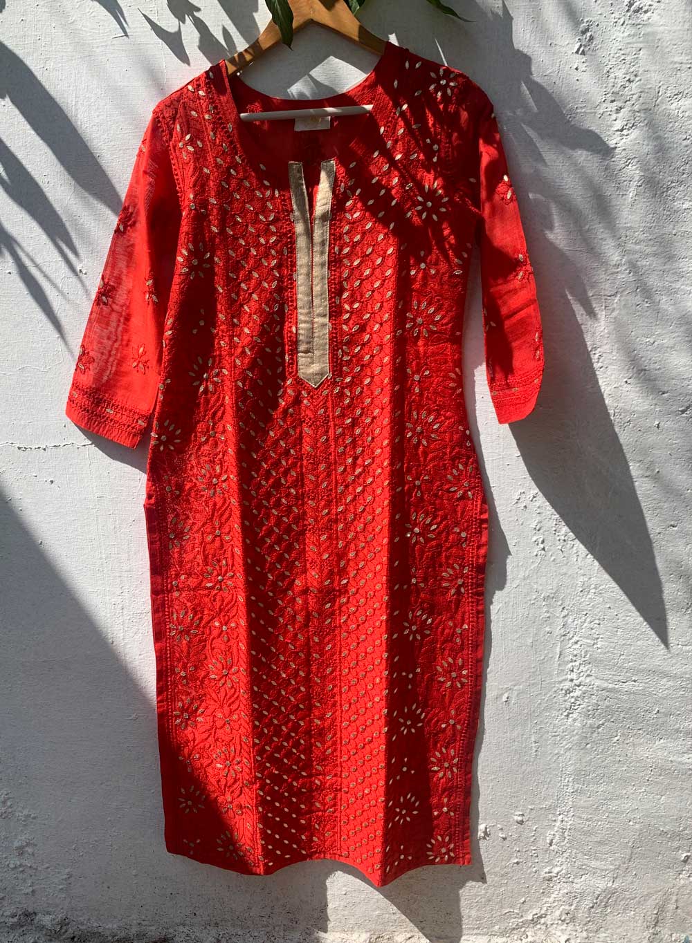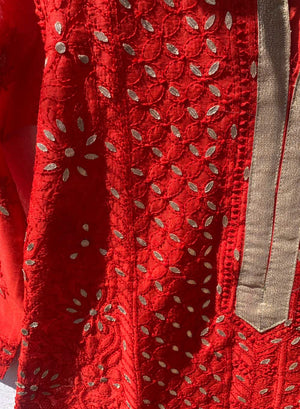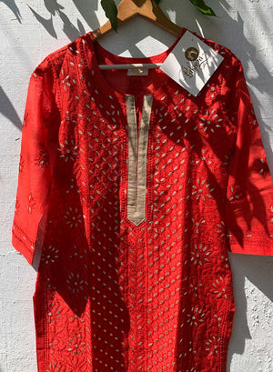 Red Gota Patti - Firdaus Chanderi Chikankari Kurta