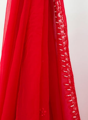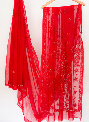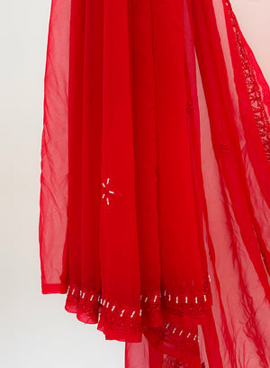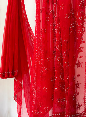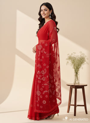 Elegant, hand embroidered and simply beautiful, our Aks Georgette Chikankari Saree with Katdana, is all set to capture hearts.