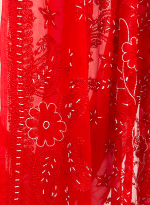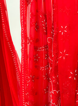 Hand embroidered with katdana, pearls and sequins, this saree has intricate embroidery and beautiful motifs.