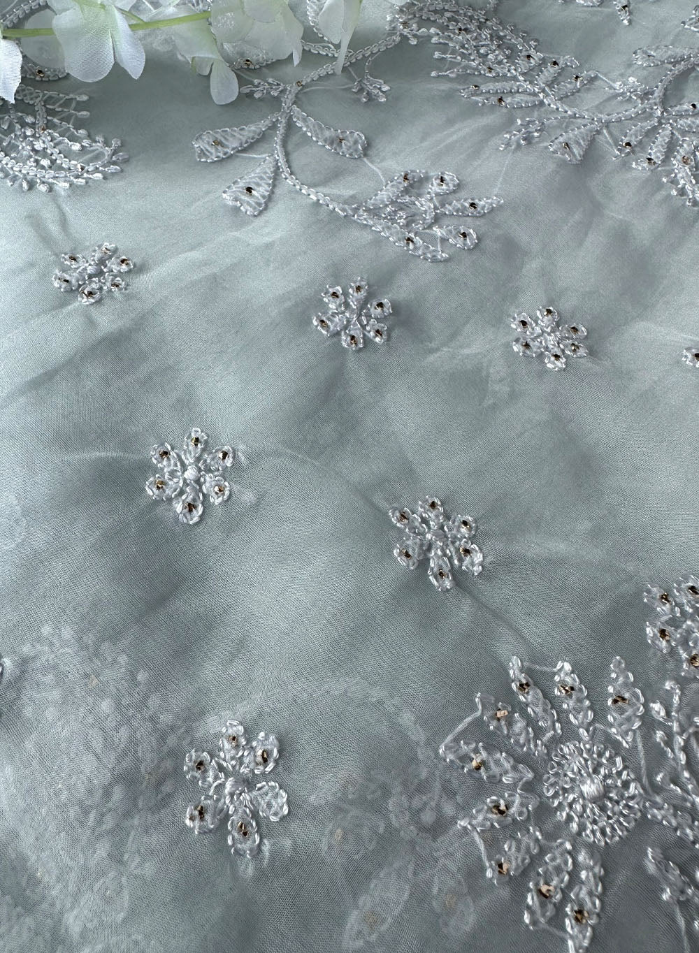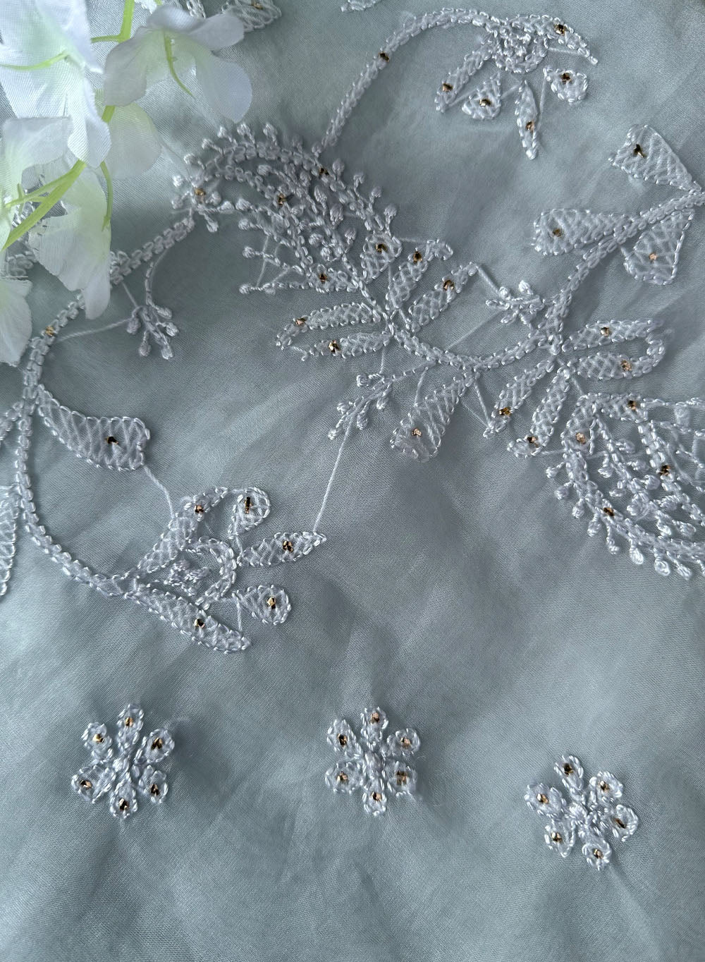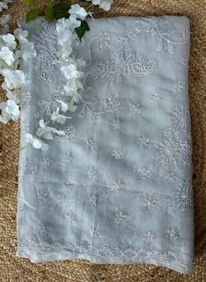Ruhani Gray Mukaish - Aks Organza Chikankari Saree