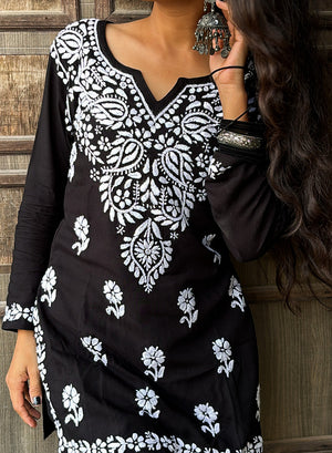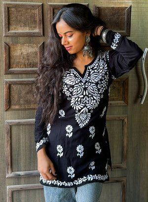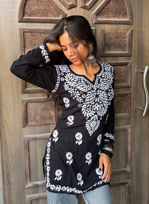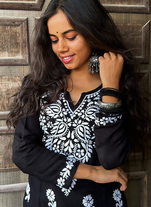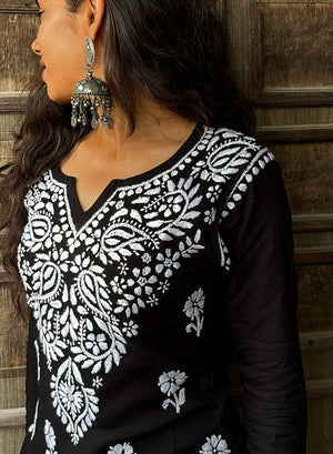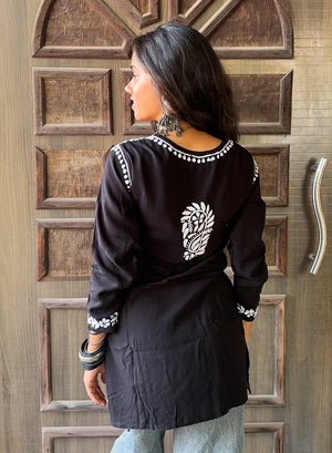 Sabaa Black - Rayon Gulshan Chikankari Short Top