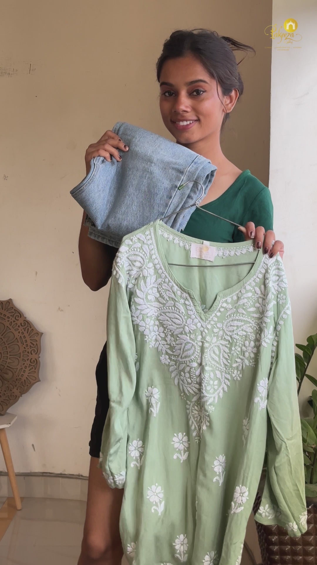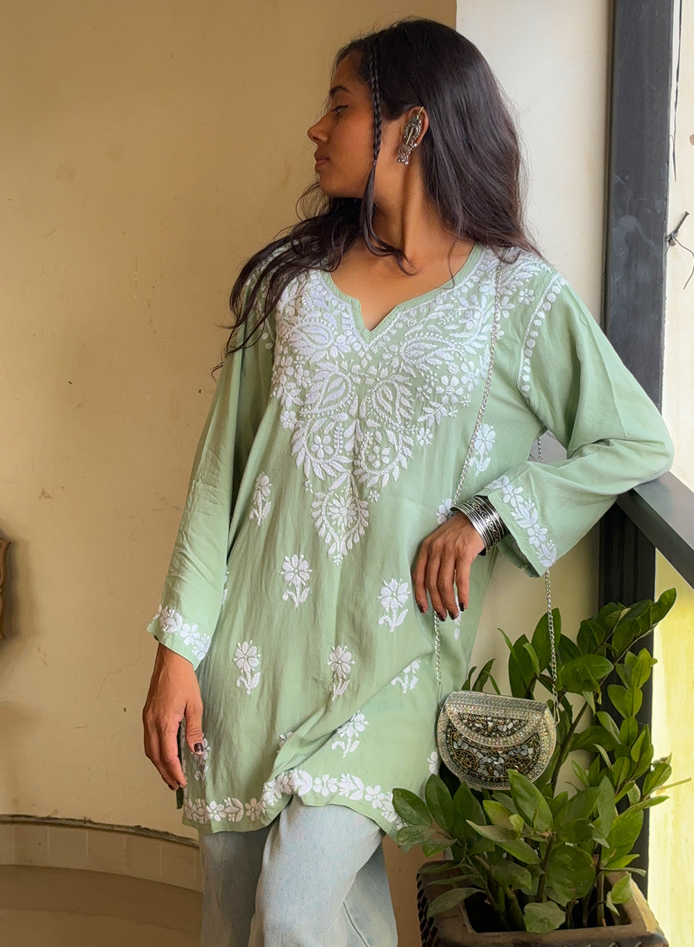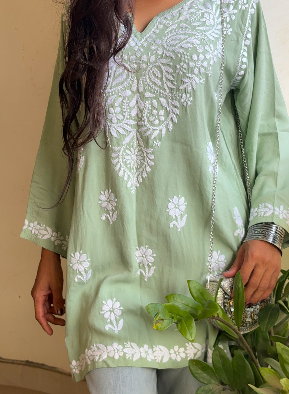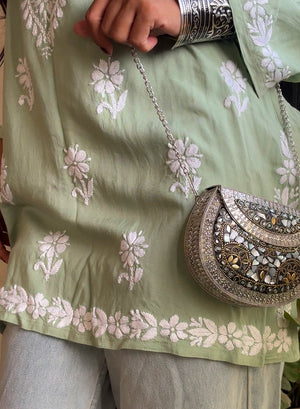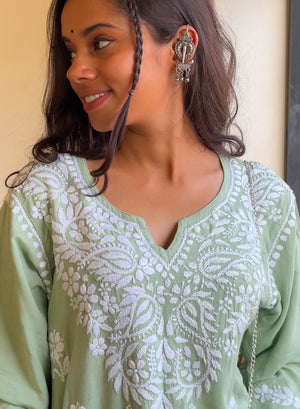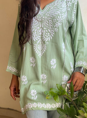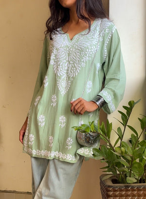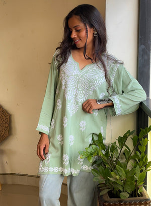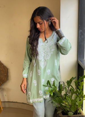 Sabaa Green - Rayon Gulshan Chikankari Short Top