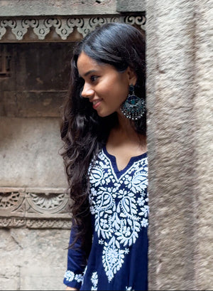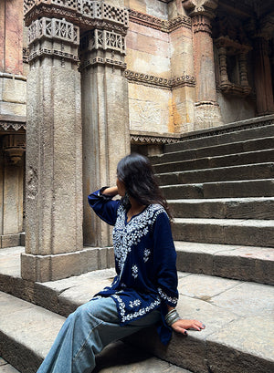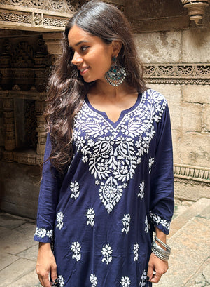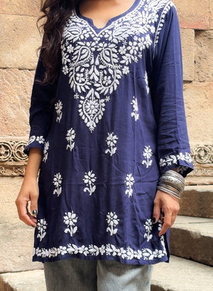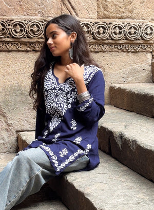 Sabaa Navy Blue - Rayon Gulshan Chikankari Short Top