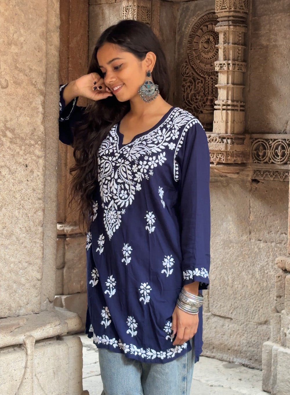 Our Sabaa Rayon Short Tops, with white cotton thread hand embroidery, are an absolutely winner!