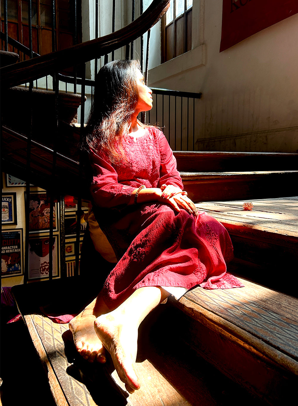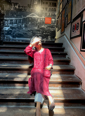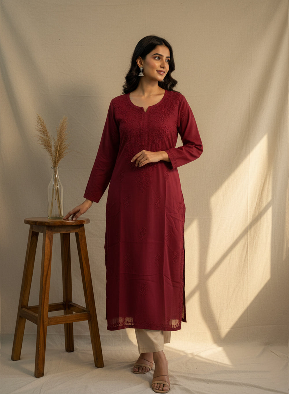 Sadgi Wine - Bahaar Muslin Solid Chikankari Kurta