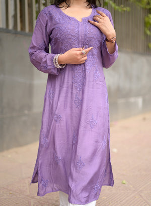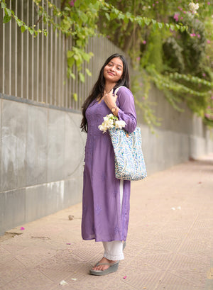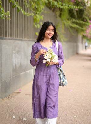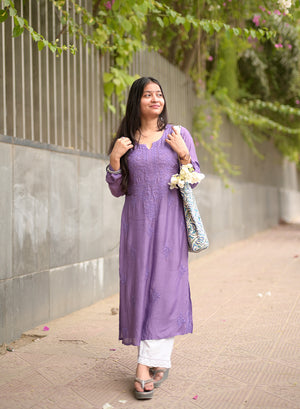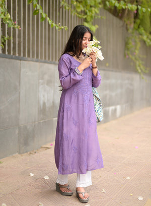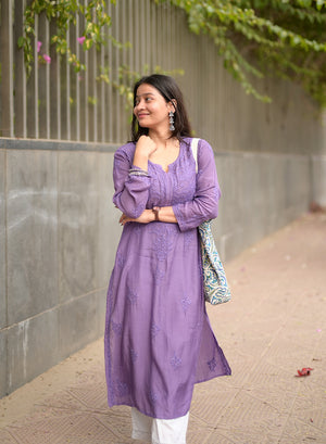 Sadgi Lavender - Bahaar Muslin Solid Chikankari Kurta