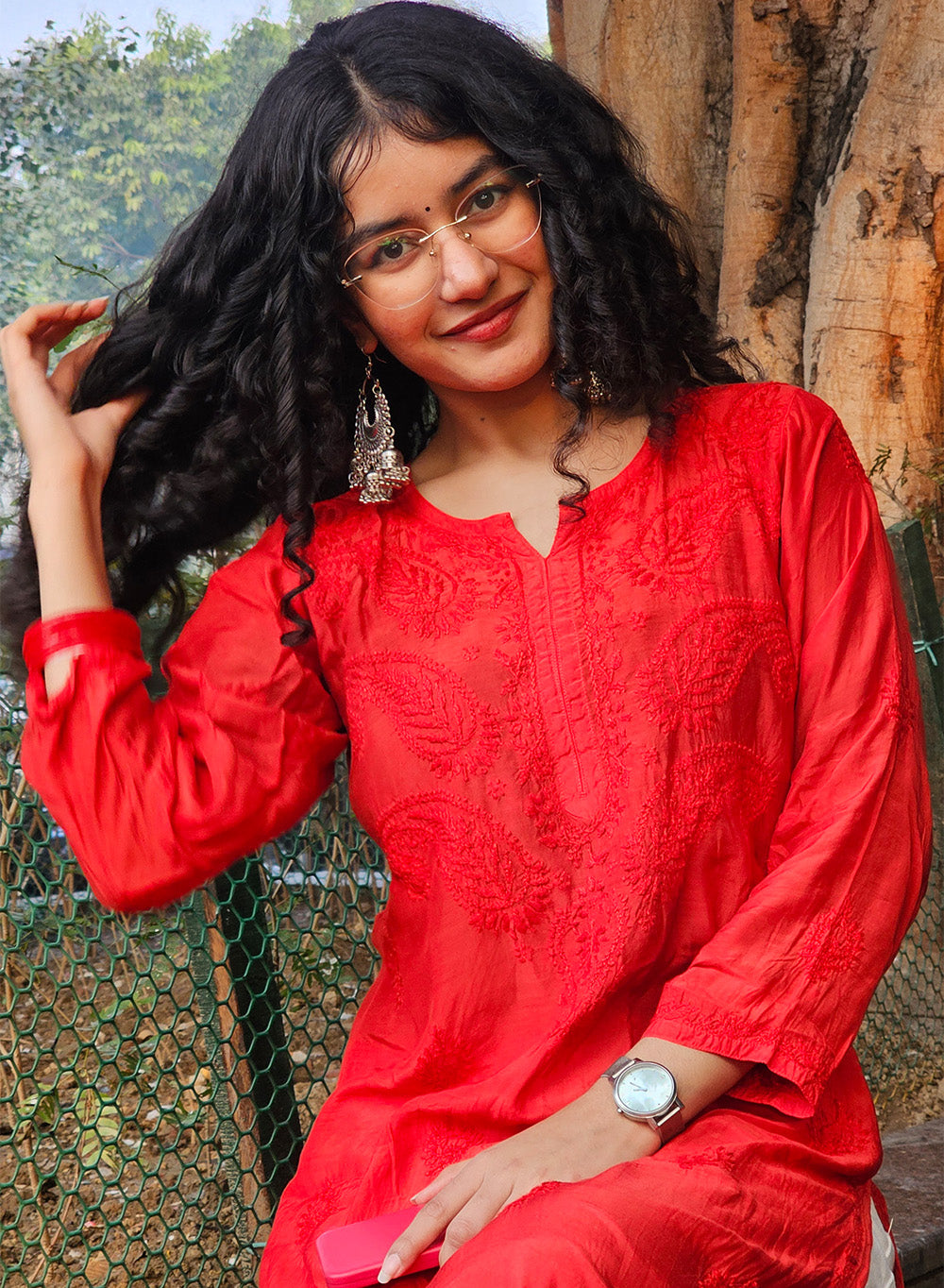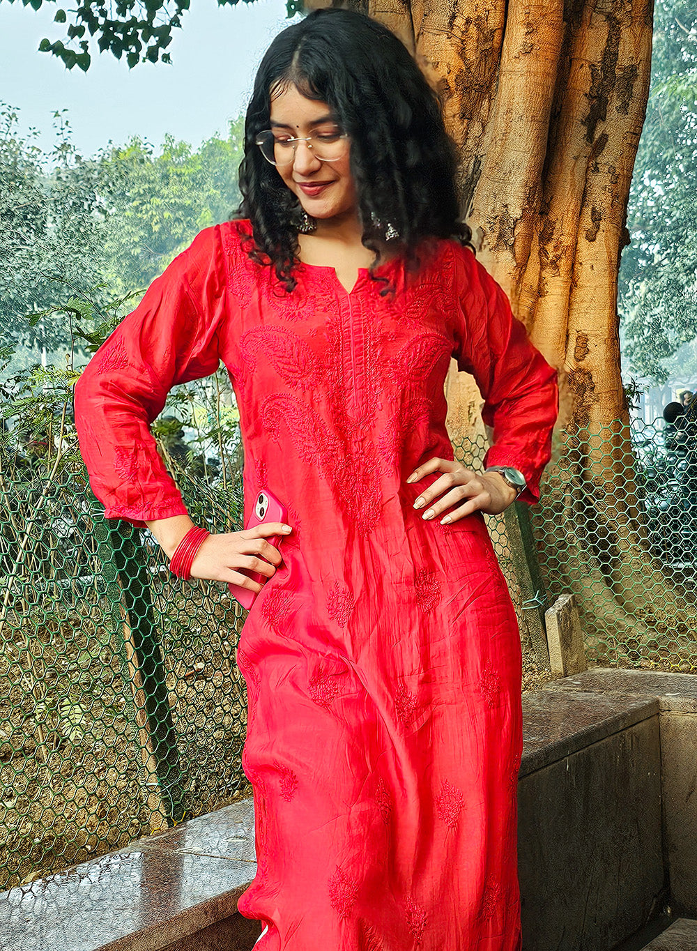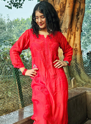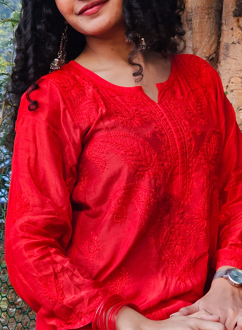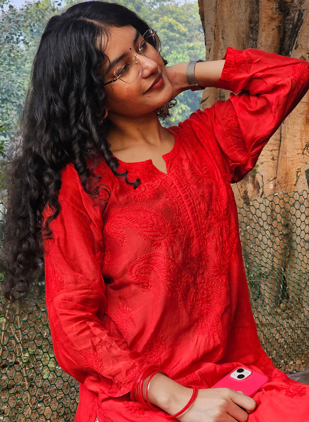 Sadgi Red - Bahaar Muslin Chikankari Kurta