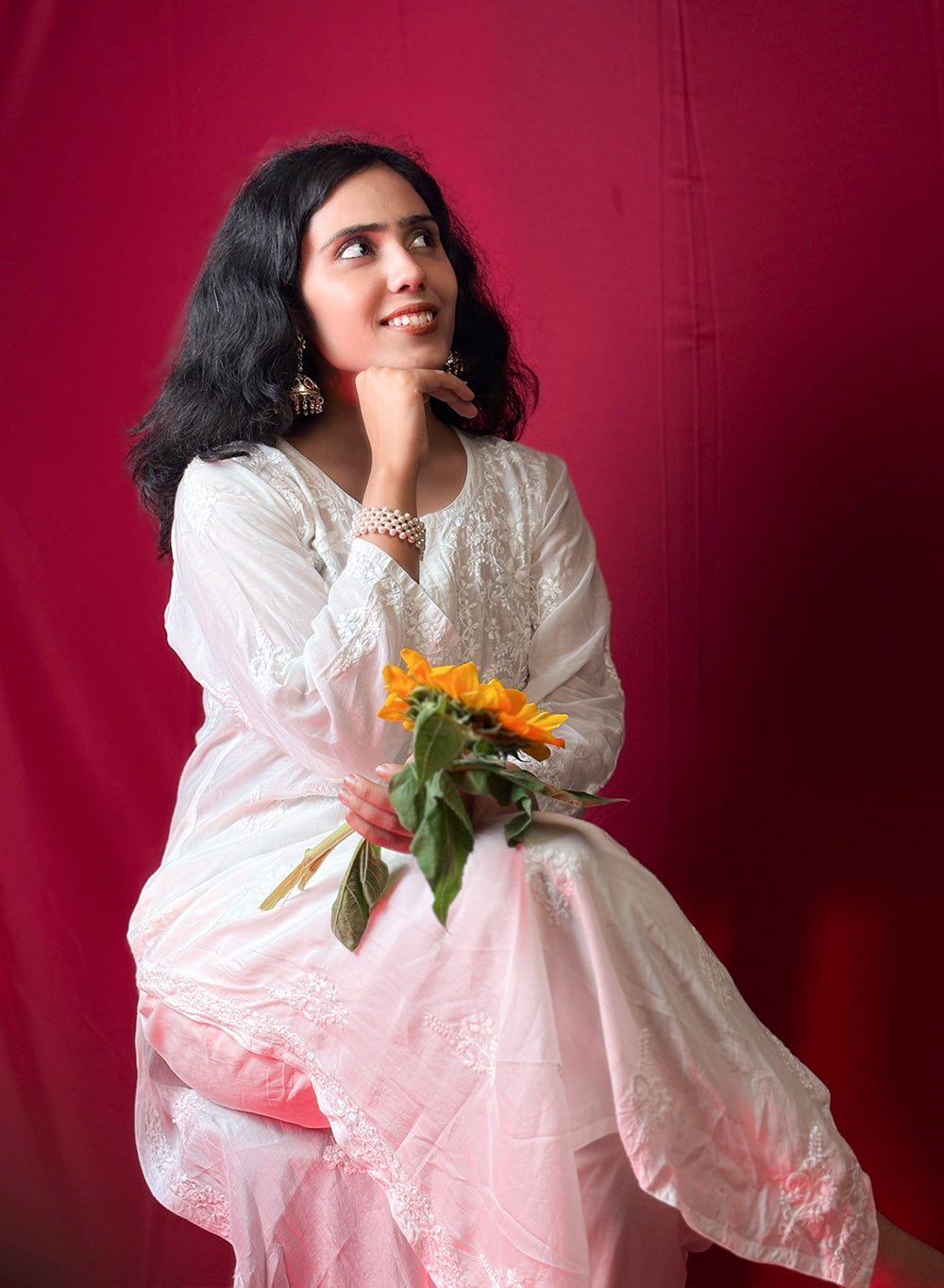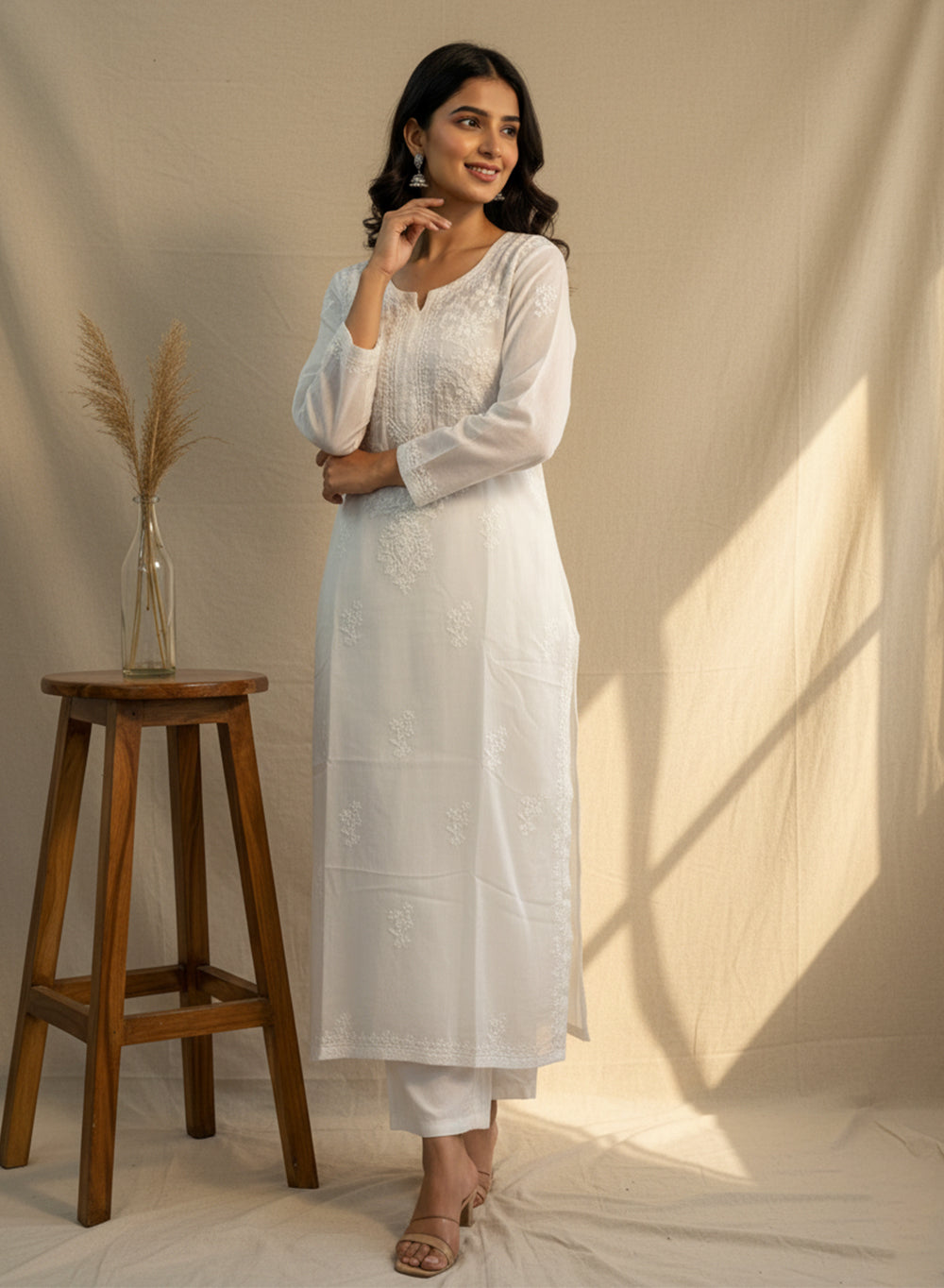 Sadgi White - Bahaar Muslin Solid Chikankari Kurta