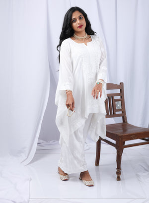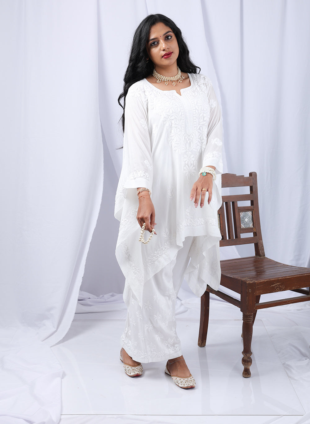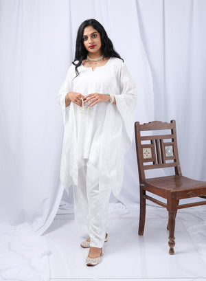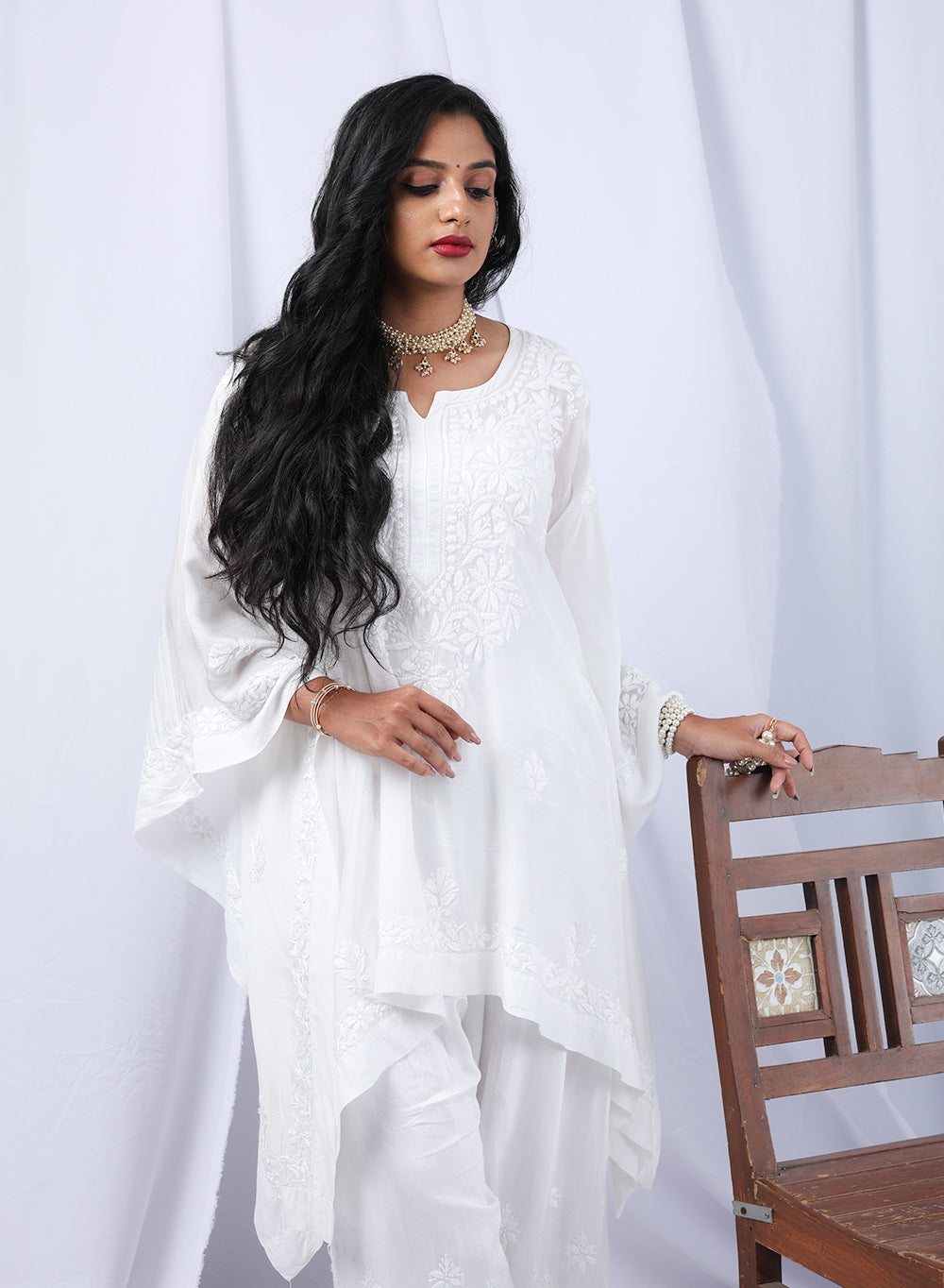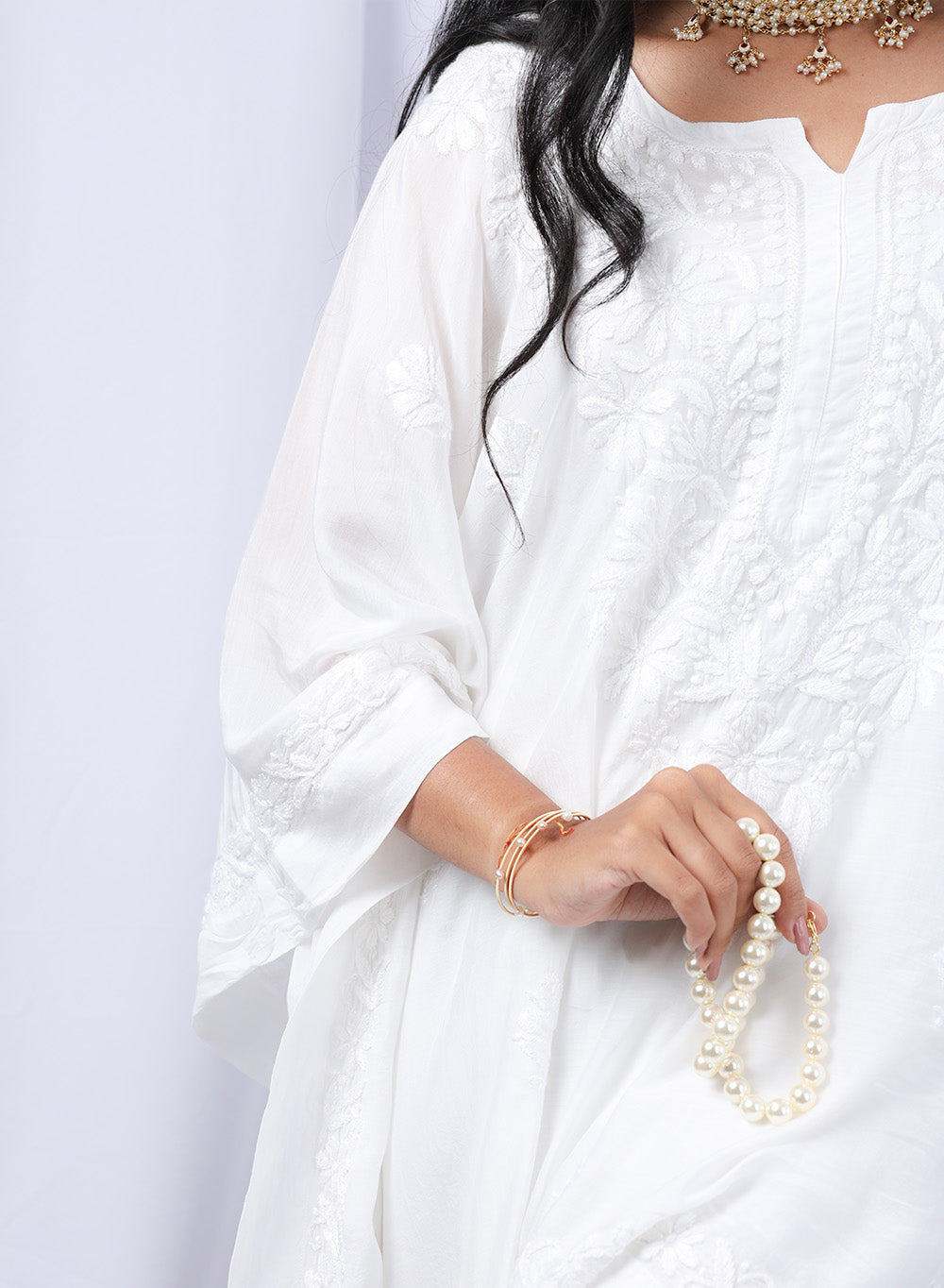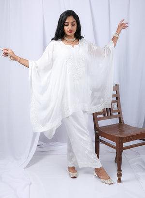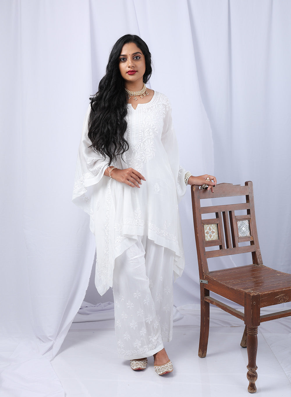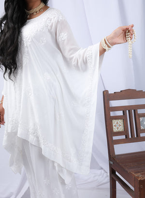 Sahiba - Nargis Muslin Kaftan & Palazzo Chikankari Set
