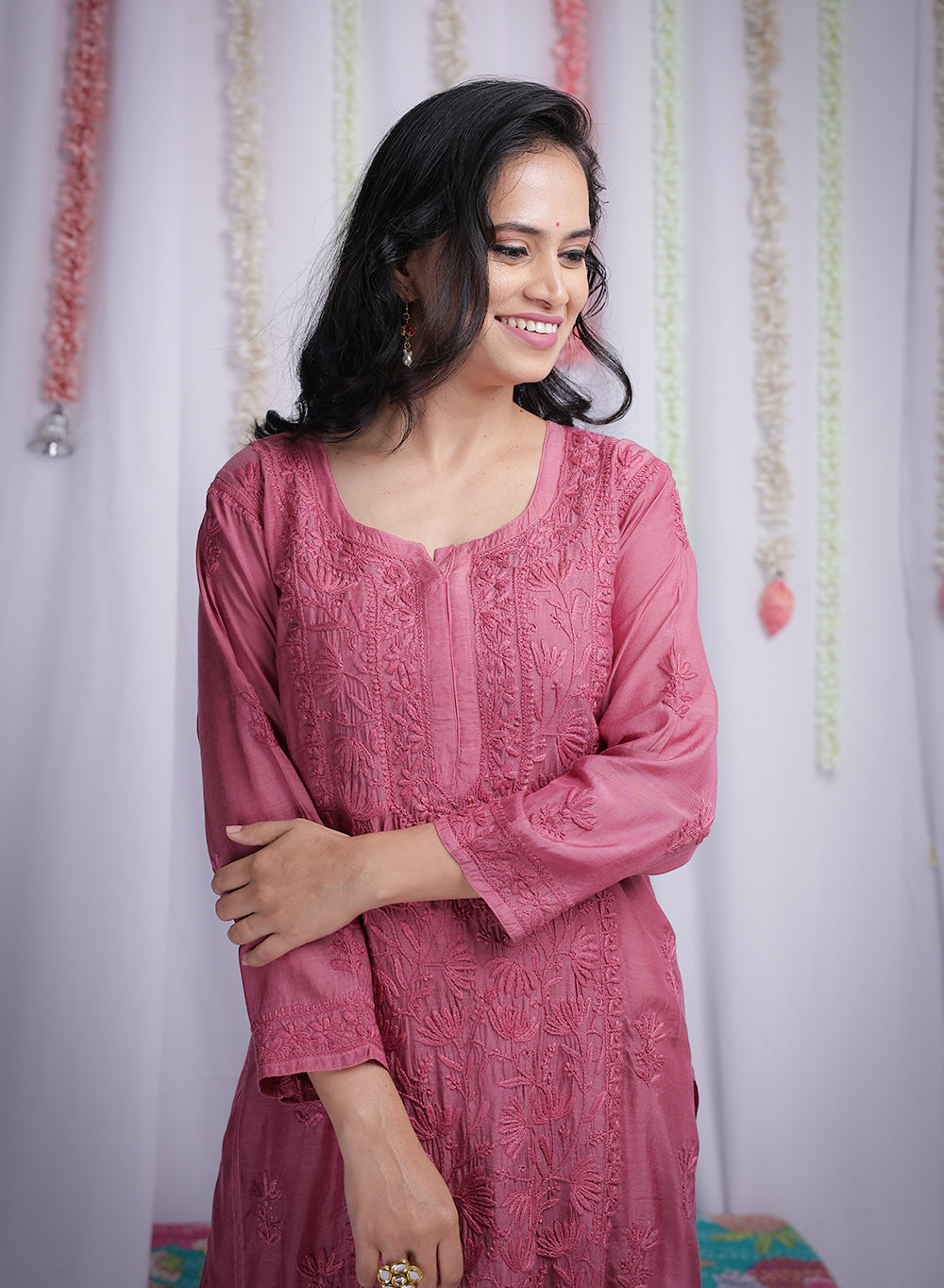 Saroj Onion Pink - Muslin Nargis Chikankari Set