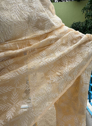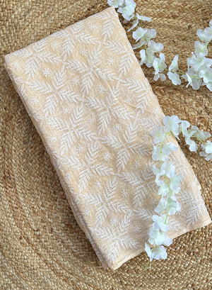 Shabnam Light Orange Full Jaal - Aks Cotton Tepchi Chikankari Saree