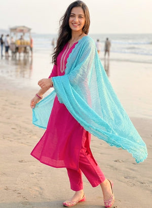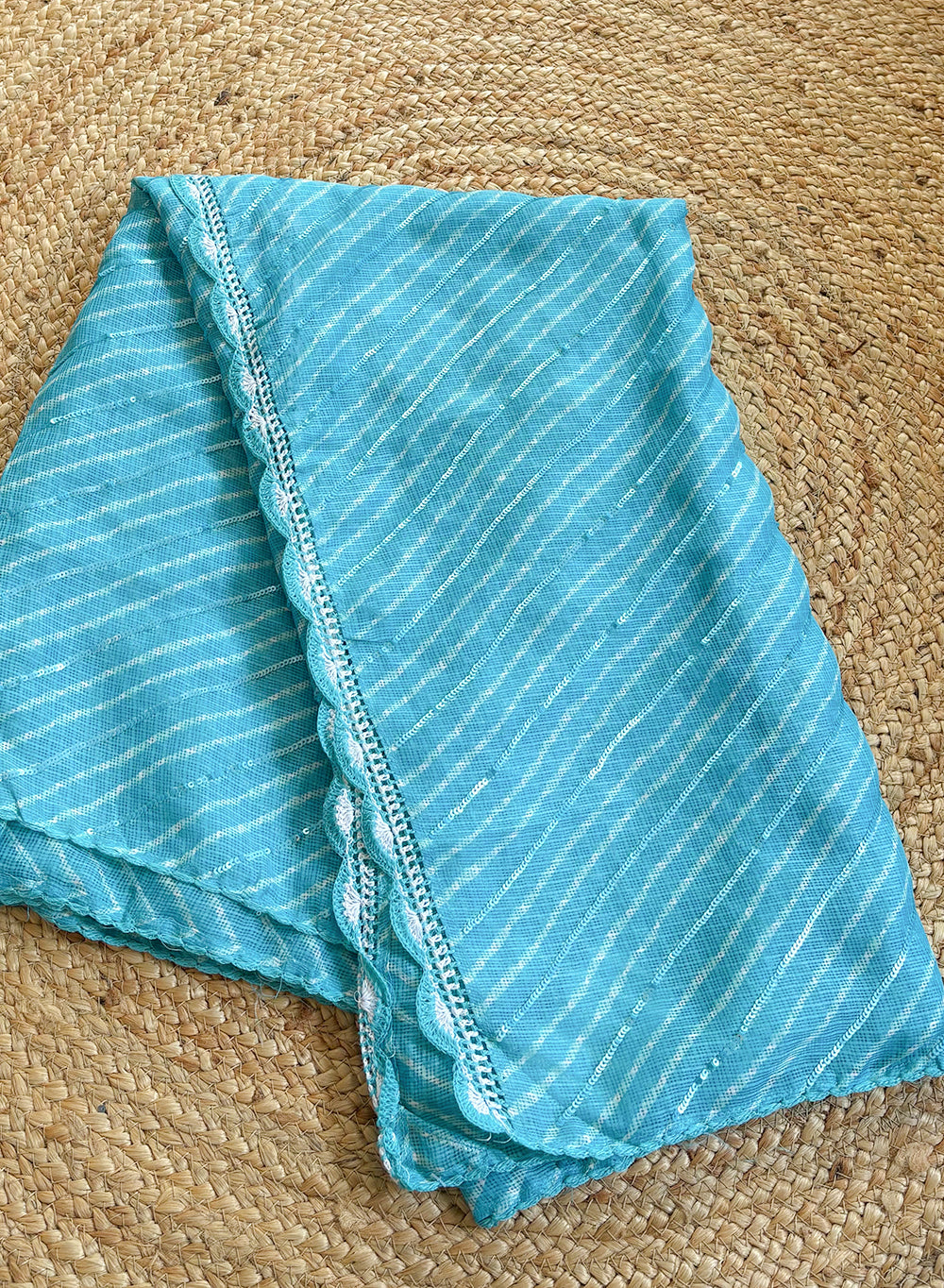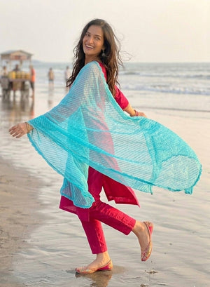 Sky Blue Lehariya - Nazm Kota Cotton Chikankari Dupatta with Sequins