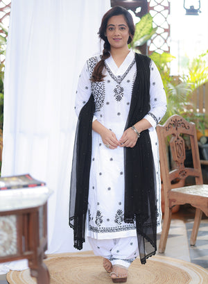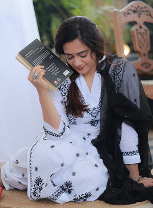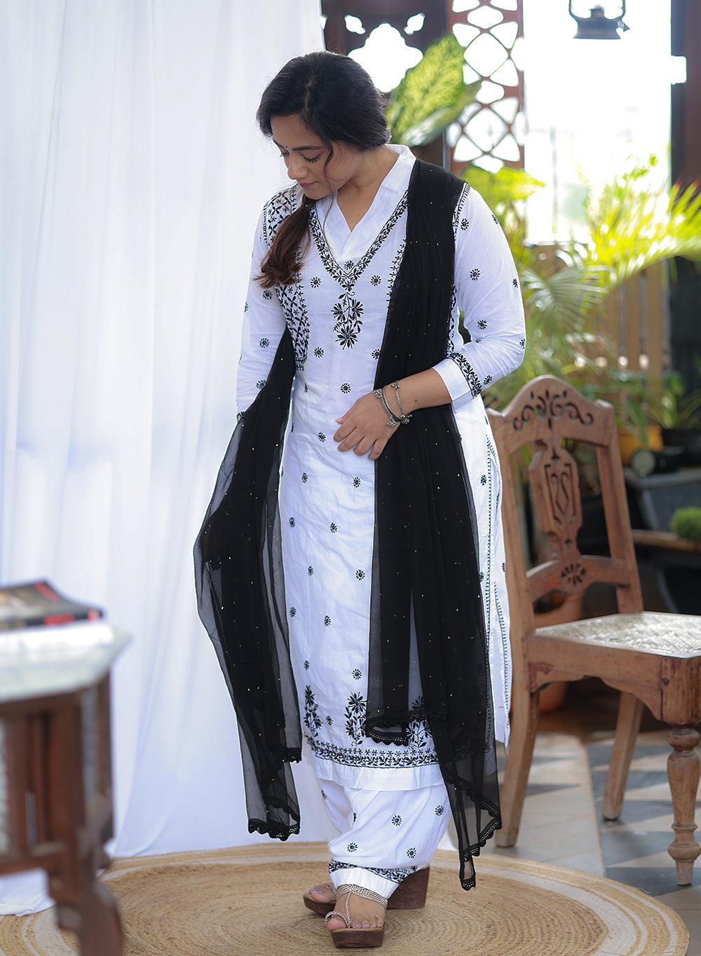 Spruha - Cotton White Nargis Chikankari Kurta & Salwar Set