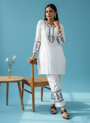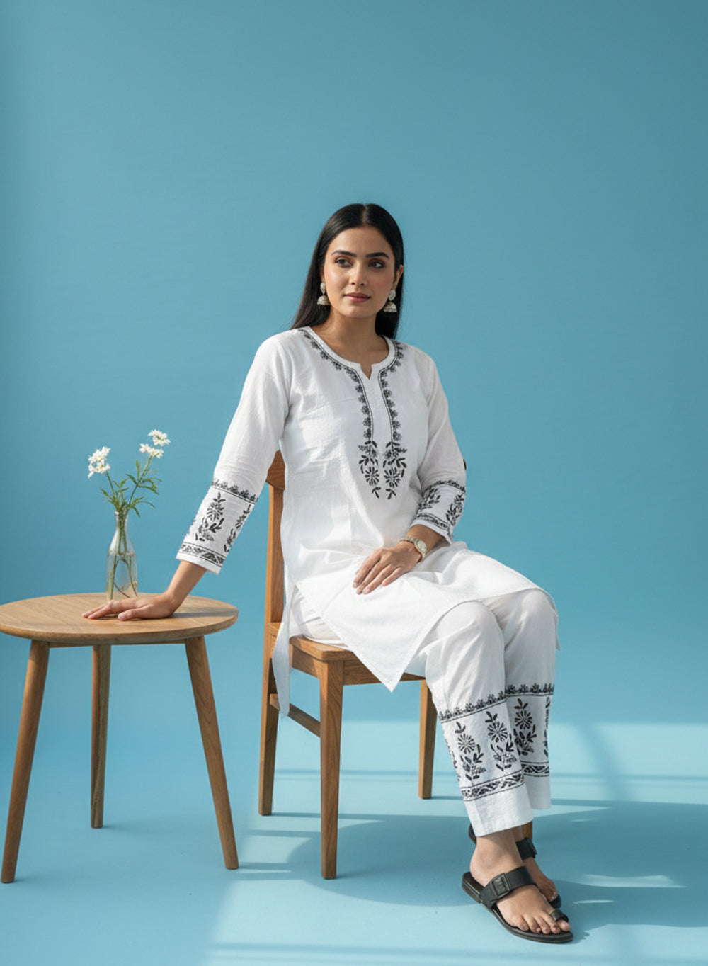 Our Madno - Mul Cotton White Nargis Chikankari Co-ords Set, blends comfort and cultural elegance in every stitch.