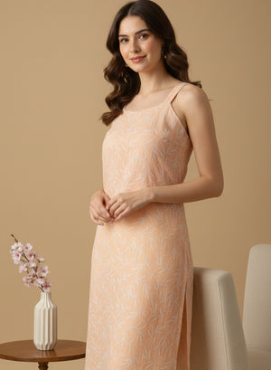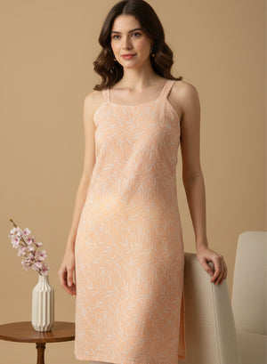 Surbhi Peach Kota Cotton - Bahaar Noodle Strap Chikankari Kurta