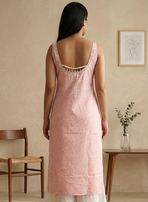 Surbhi Pink Printed Mul Cotton - Bahaar Noodle Strap Chikankari Kurta