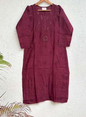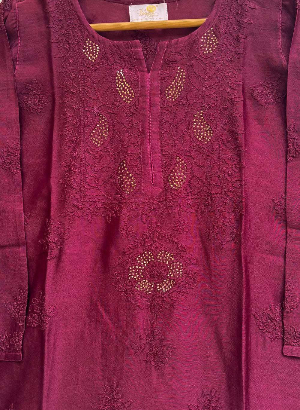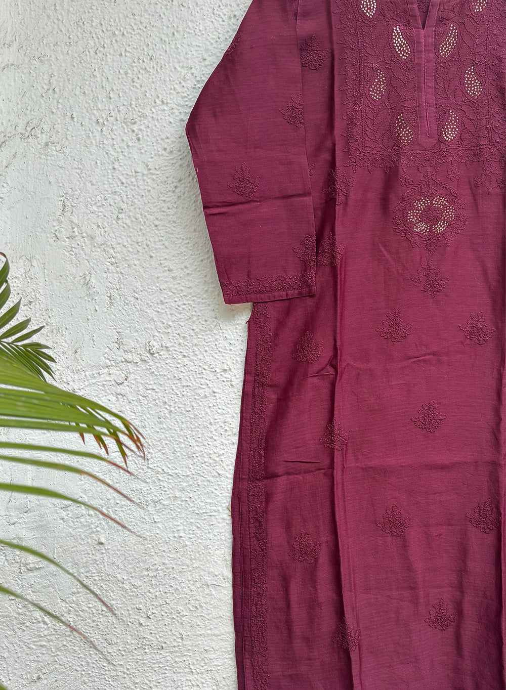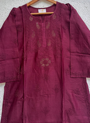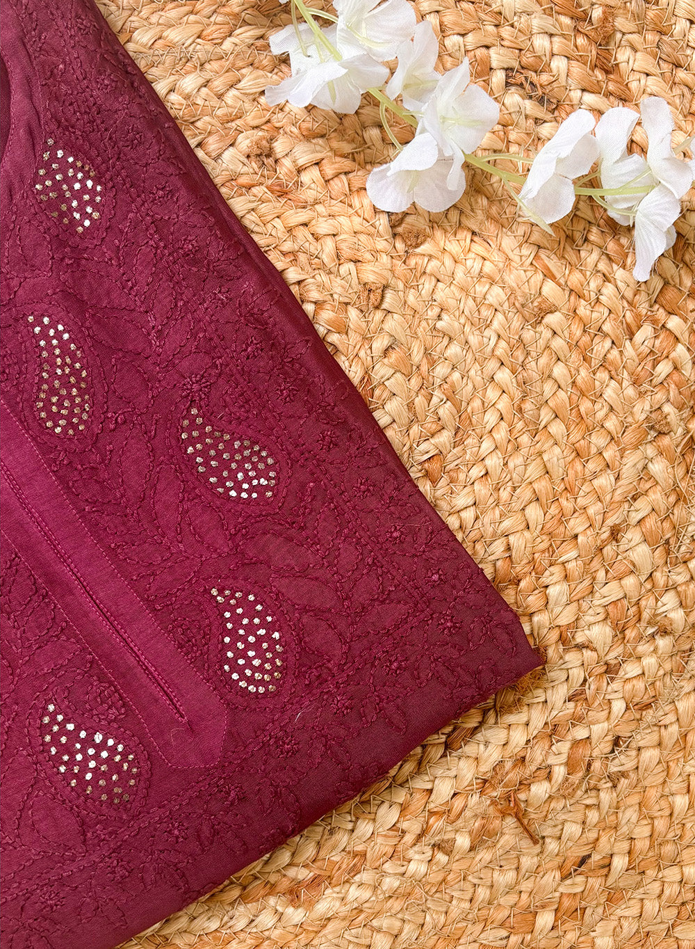 Swara Burgungy - Anjuman Chanderi Cotton Chikankari Kurta