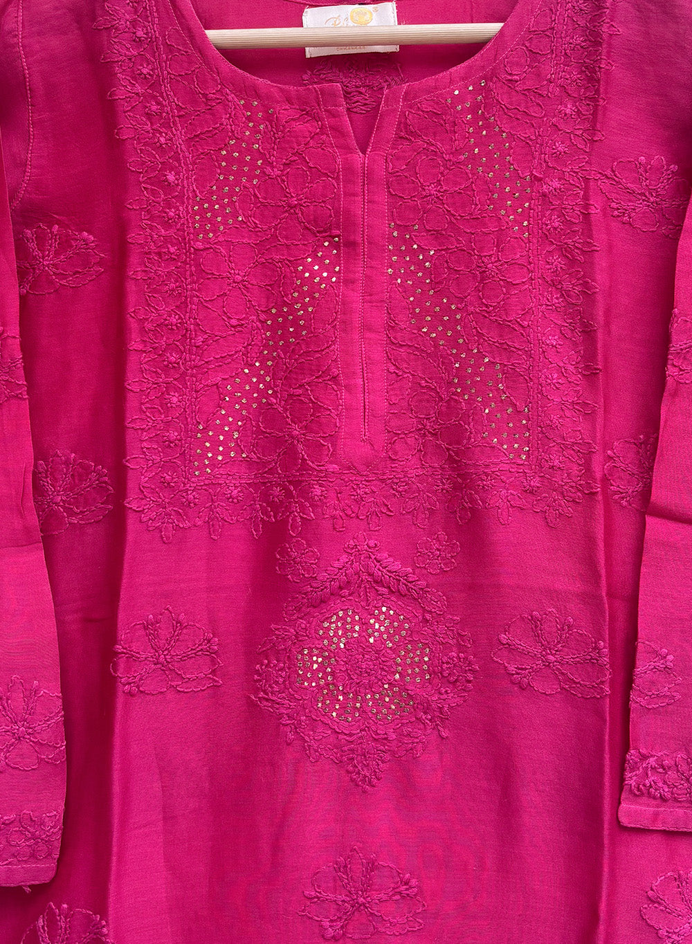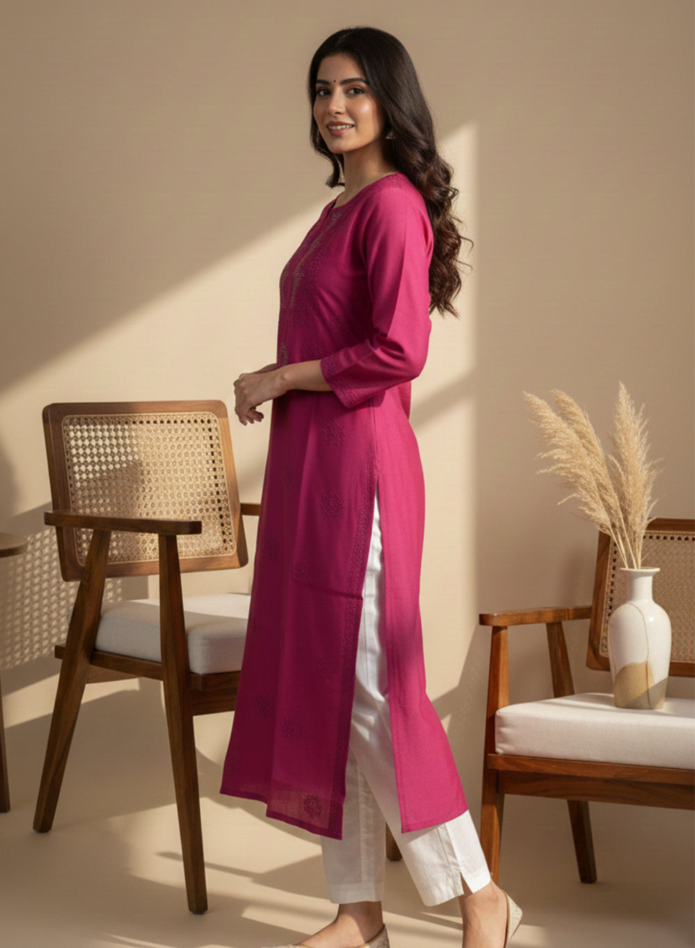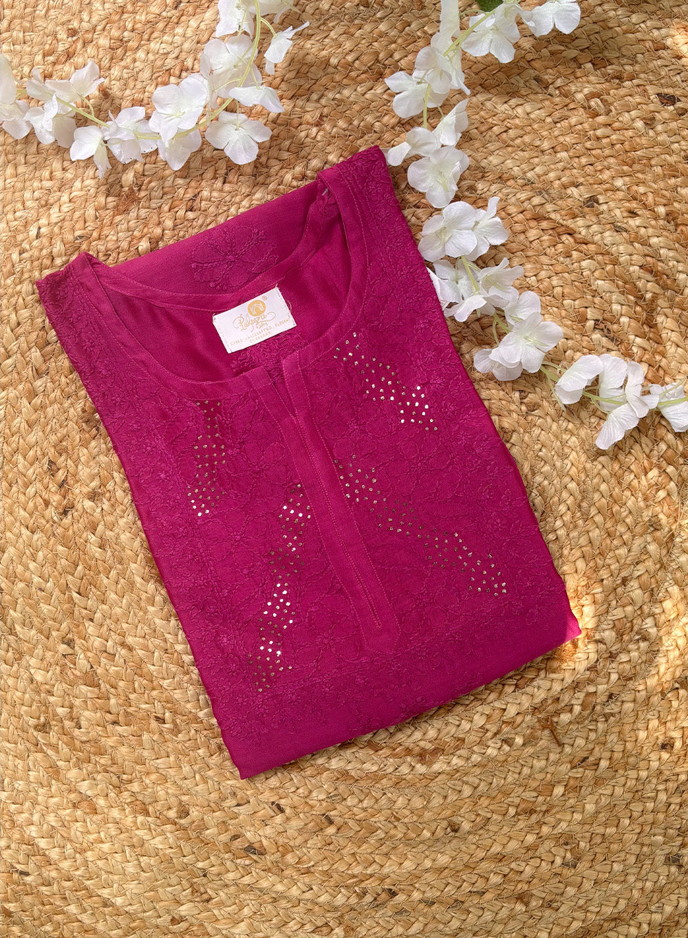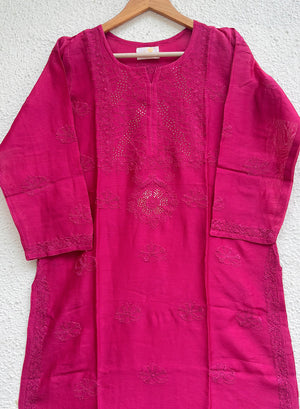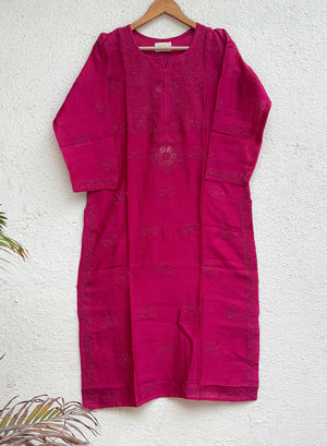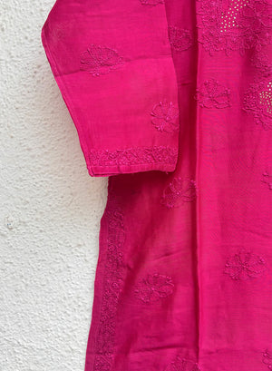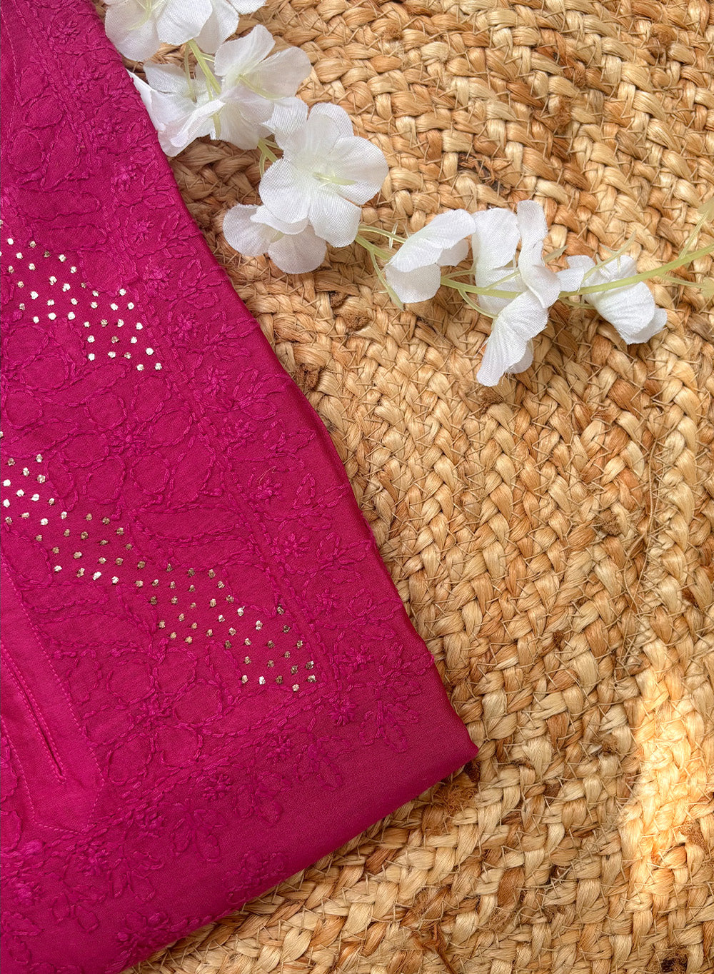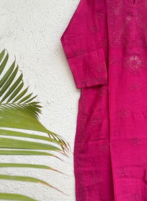 Swara Dark Pink - Anjuman Chanderi Cotton Chikankari Kurta