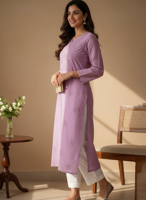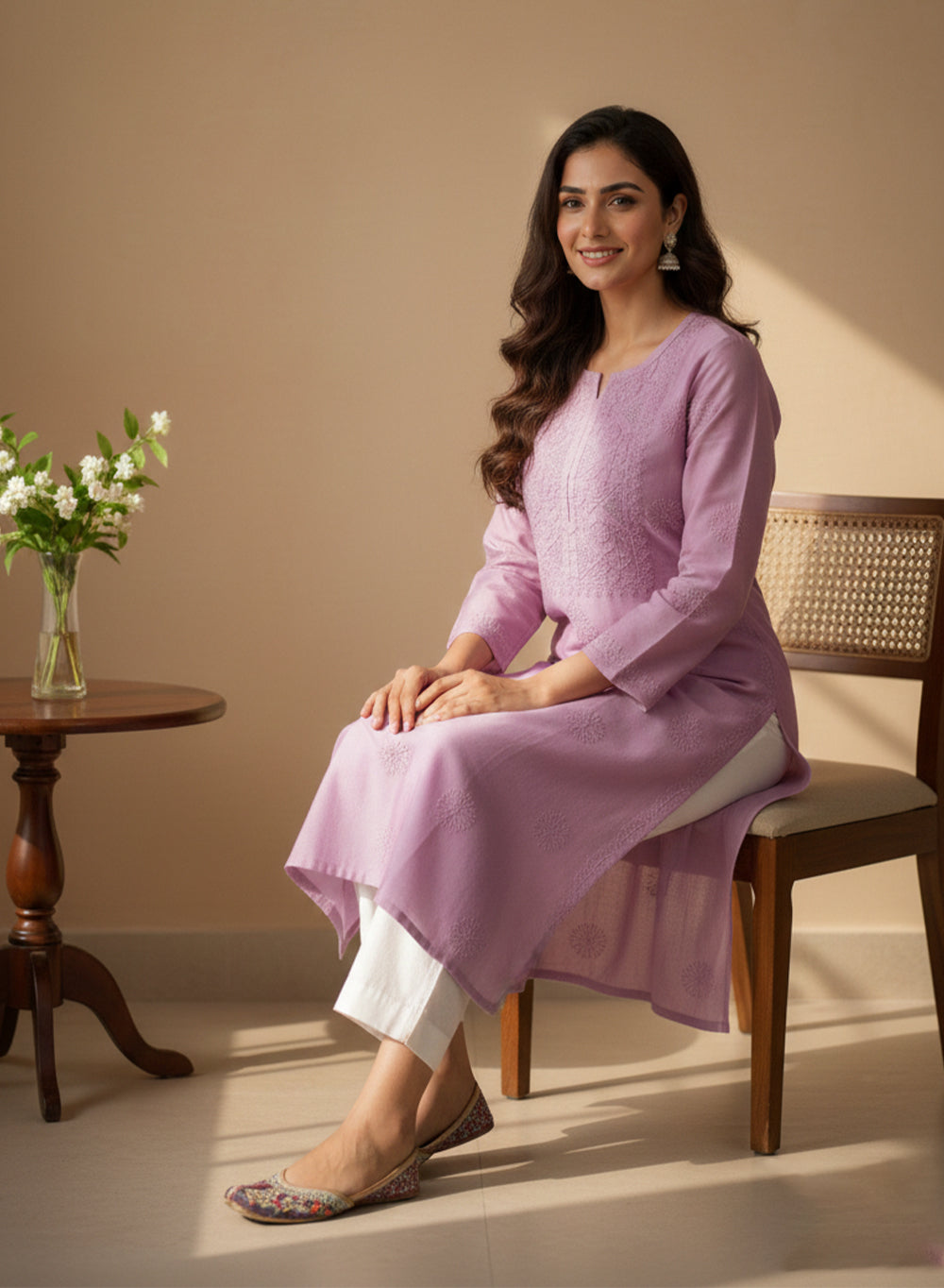Swara Lilac - Anjuman Chanderi Cotton Chikankari Kurta
