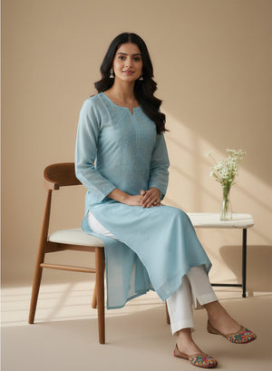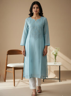 Swara Blue - Anjuman Chanderi Cotton Chikankari Kurta