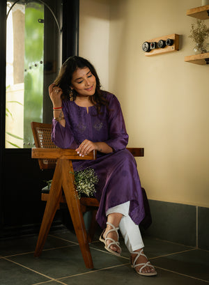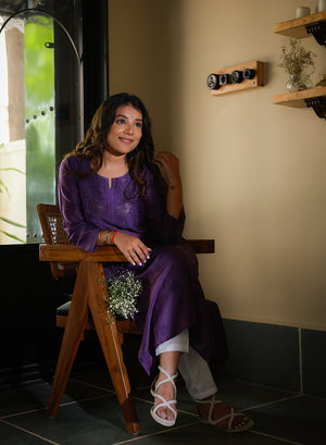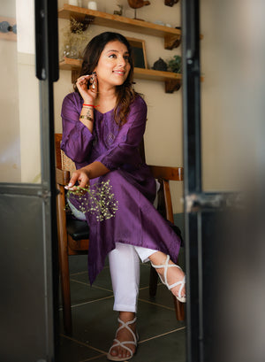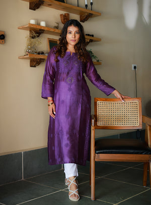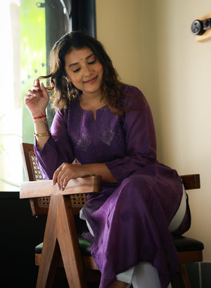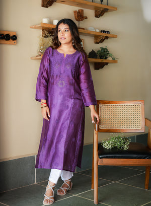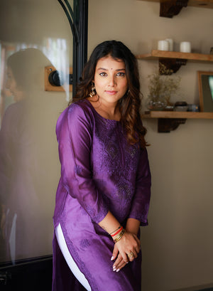 Swara Violet - Anjuman Chanderi Cotton Chikankari Kurta