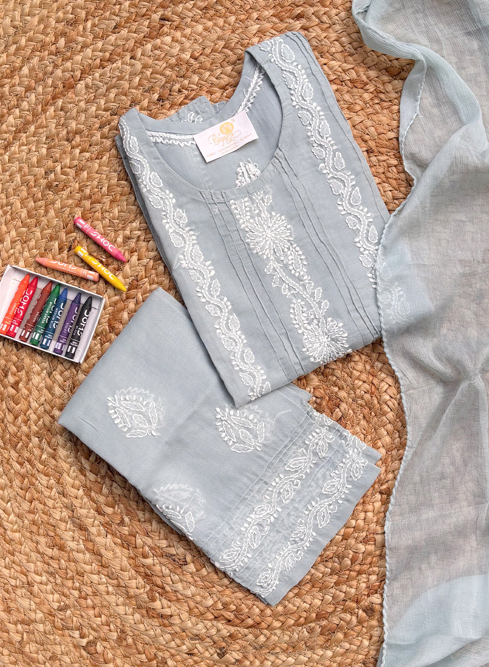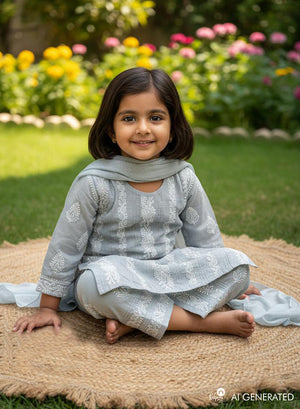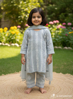 The Titli Cotton Kurta With Pants & Chiffon Dupatta Set is a beautiful harmony of tradition and comfort, designed for little ones who love to move and explore.