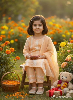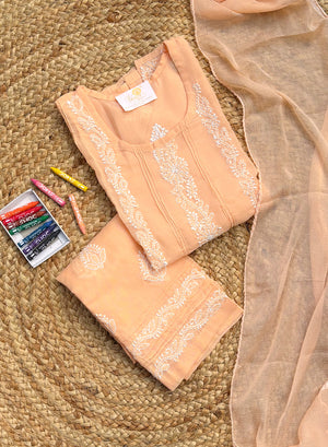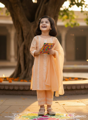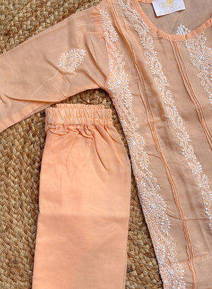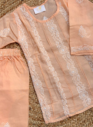Titli Light Orange - Cotton Chikankari Kidswear Set