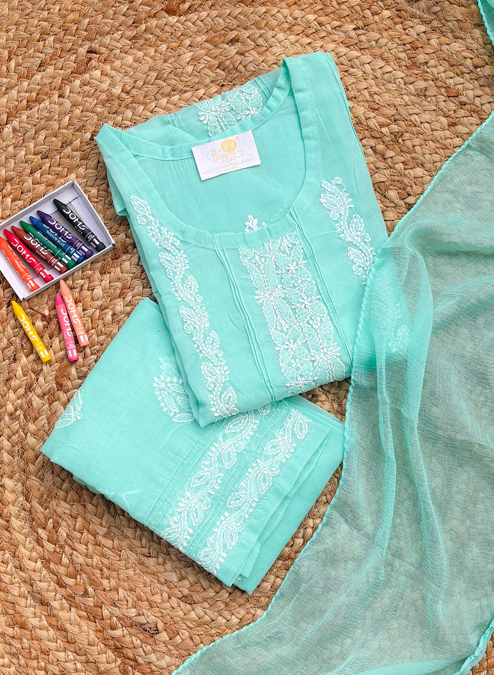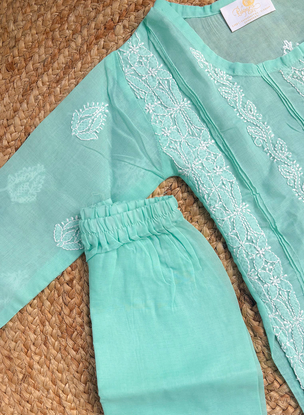 Titli Sea Green - Cotton Chikankari Kidswear Set