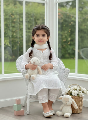 White Cotton - Chikankari Nanhe Farishtey Kidswear Set