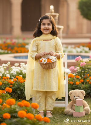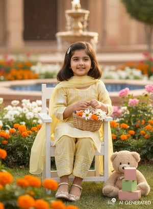 Titli Light Yellow - Cotton Chikankari Kidswear Set
