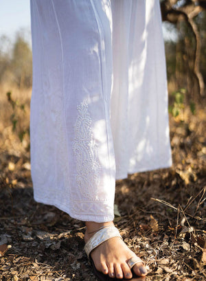 Tranquil -Ta'abeer White Rayon Chikankari Sharara (Plazzo)