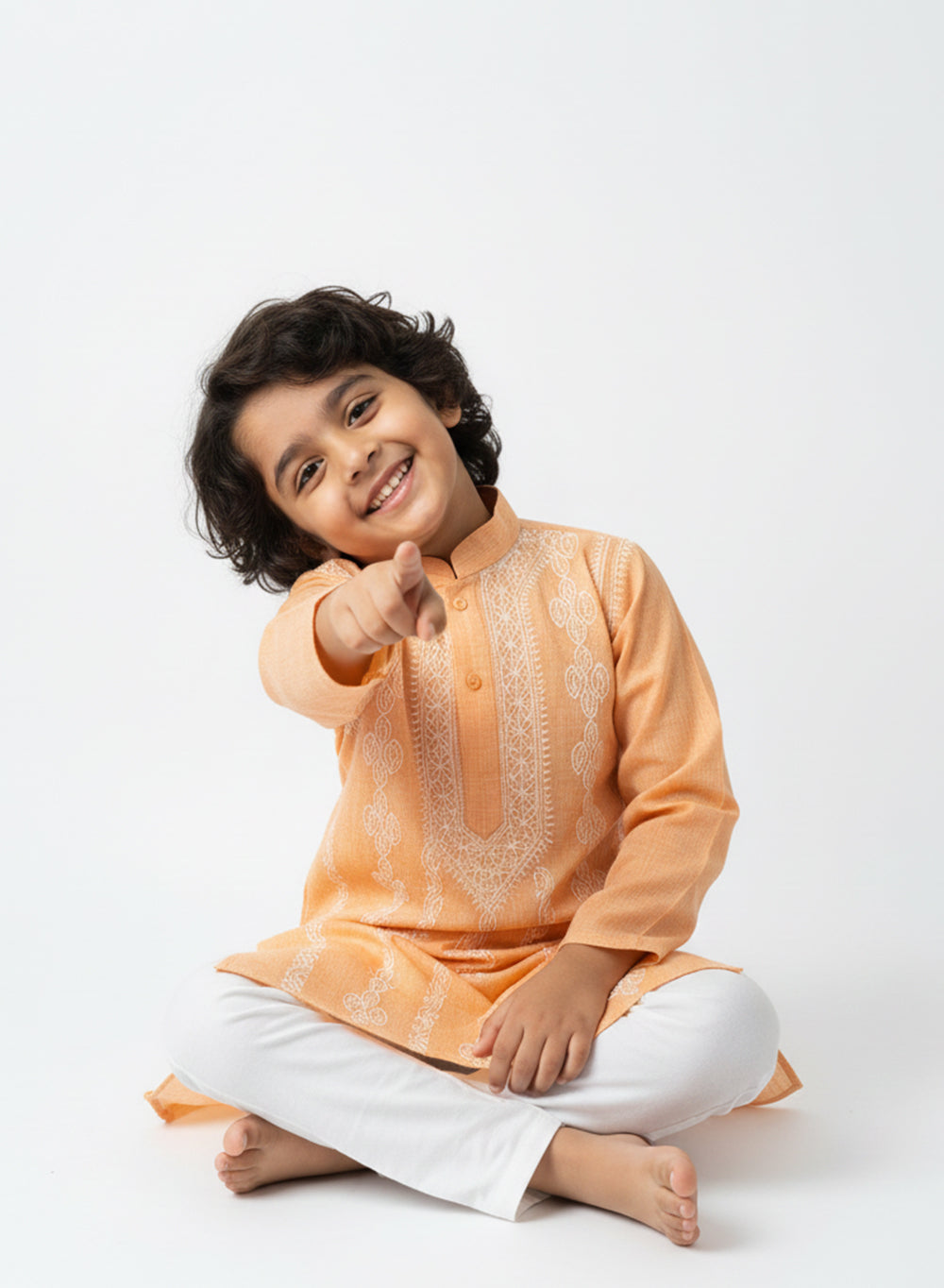Vedant Orange - Nanhe Farishtey Cotton Chikankari Kurta