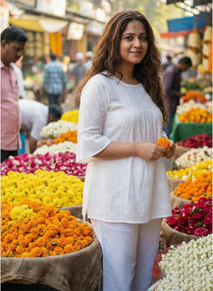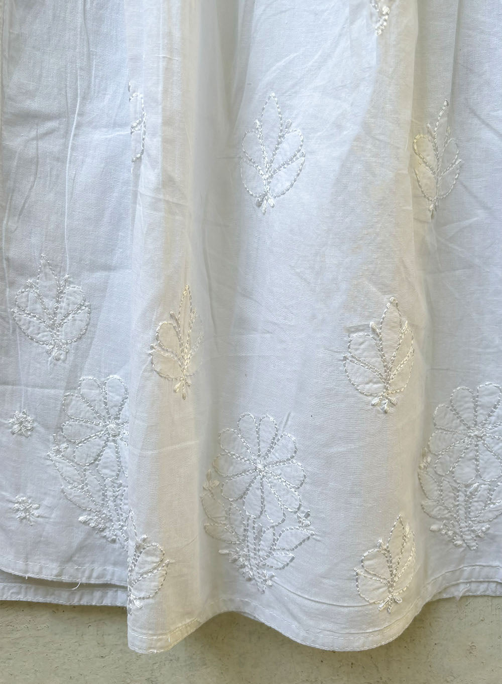 Our one of a kind Pure Cotton Short Top, has been hand embroidered with beautiful chikankari motifs with bell sleeves for that etc. oomph!