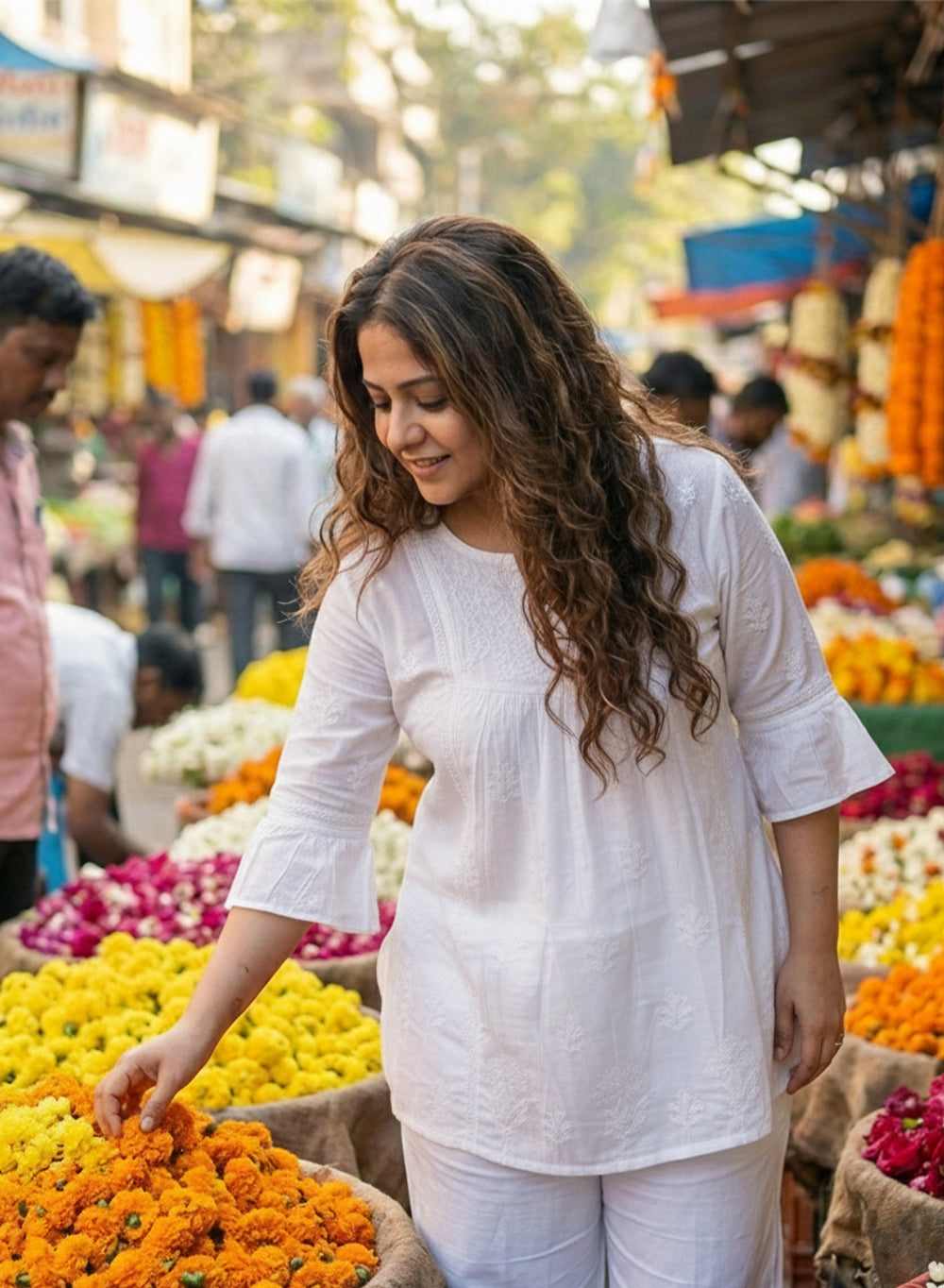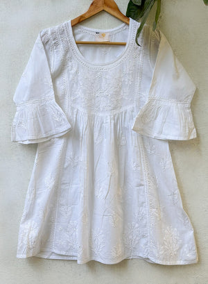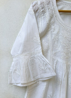 White Bell Sleeves - Pure Cotton Gulshan Chikankari Short Top