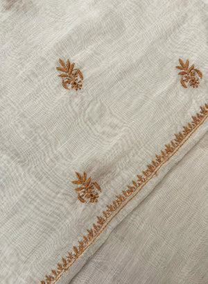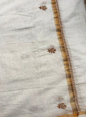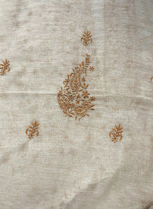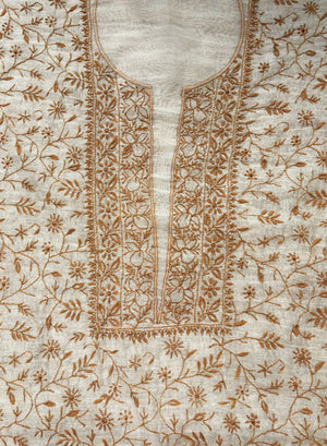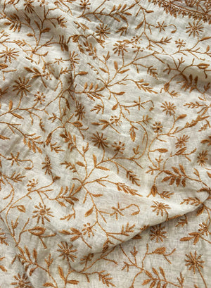 White & Brown - Nayaab Mul Chanderi Chikankari Kurta Fabric