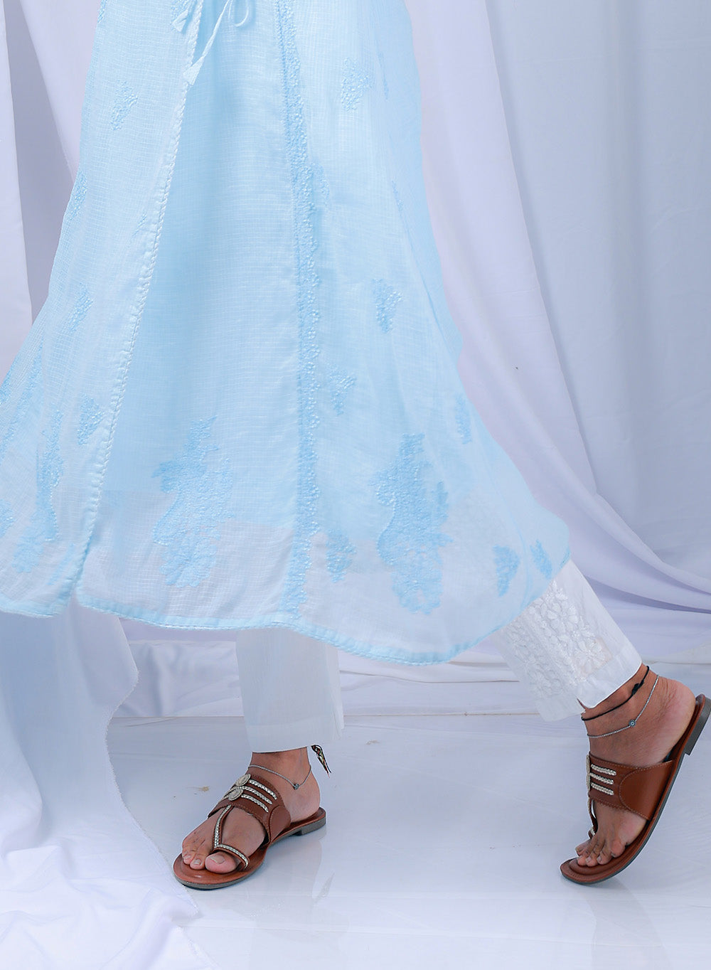 Our Chikankari Straight Lycra Pants With Side Design, are crafted with stretchable lycra fabric, bring timeless hand embroidery to modern everyday wear, a perfect blend of tradition and ease.