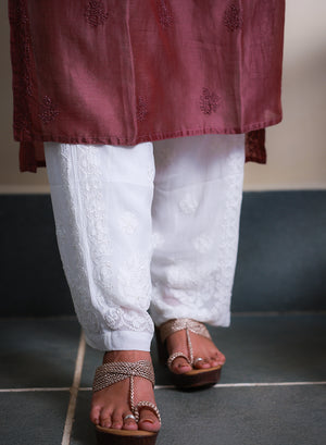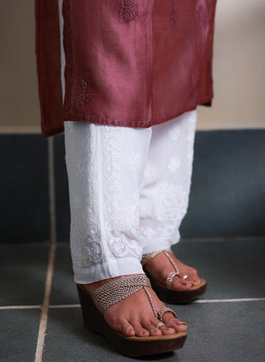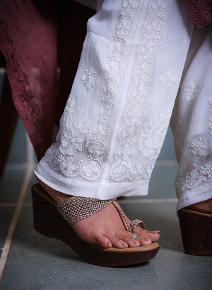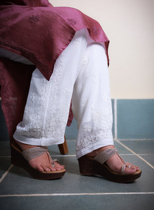 Our Chikankari Straight Viscose Pants With Side Design, are crafted with stretchable lycra fabric, bring timeless hand embroidery to modern everyday wear, a perfect blend of tradition and ease.