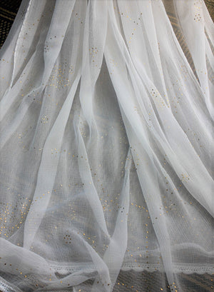 Our gorgeous hand embroidered White Chiffon Chikankari Dupatta has delicat mukaish / fardi embellishments.