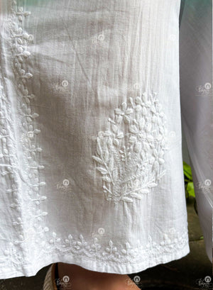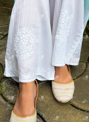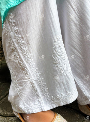 White - Ta'abeer Chikankari Mul Cotton Side Design Wide Leg Palazzo