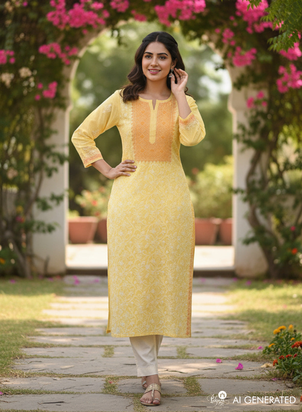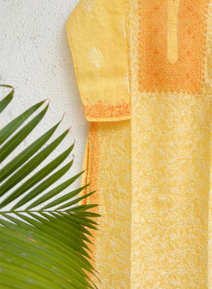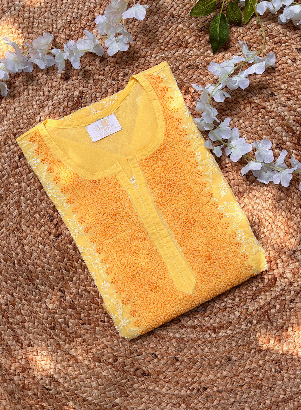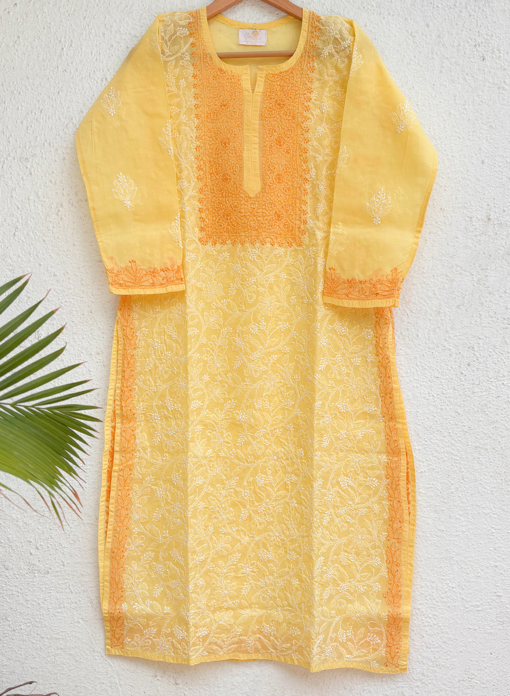 Mehak Yellow - Cotton Terry Voile Bahaar Chikankari Kurta
